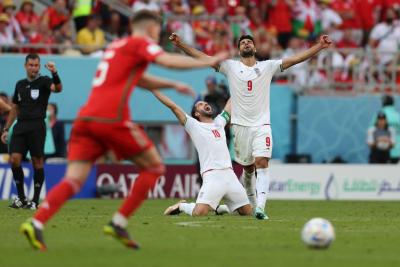 Nem énekelték a himnuszt az iráni futballisták, a teheráni televízió megszakította a közvetítéstA Wales elleni mérkőzés előtt, a himnusz alatt ezúttal is hangos fújolás volt hallható, több játékos pedig ezúttal „elénekelte” a himnuszt, pontosabban inkább maga elé motyogta a felvételek tanúsága szerint. Más szurkolók eközben elsírták magukat.