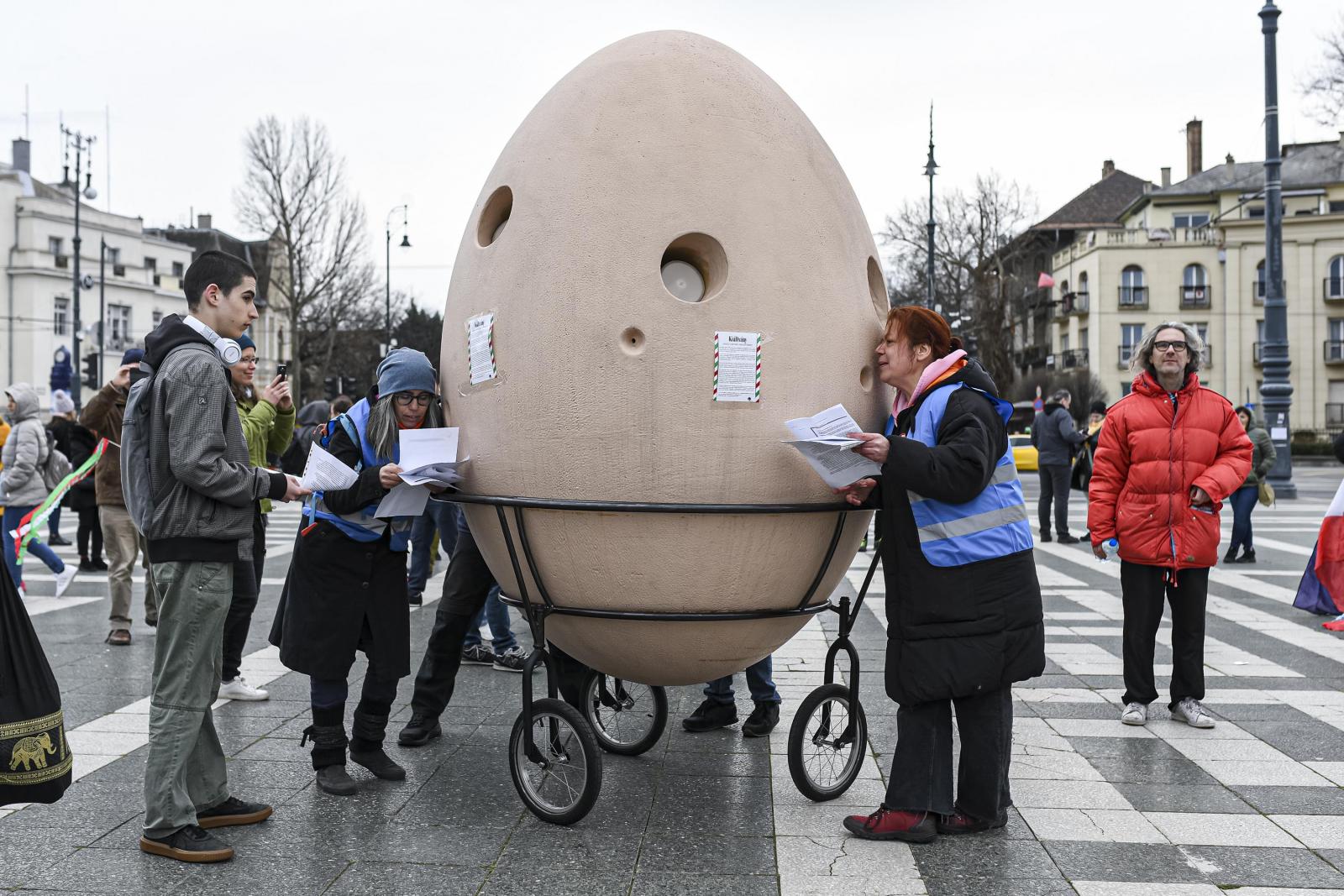 A Szabadságmenet előtt egy hatalmas tojás vonul. Ez a Független Előadó-művészeti Szövetség performansza, a tojás körül többen egyszerre beszélnek mikrofonba, hogy vidám kakofóniába fulladjon az egész. Azt mondják, az egész Hieronymus Bosch Gyönyörök kertje című festményén a bolondok hajójának a szimbóluma, egy külföldön élő házaspár készítette egy korábbi képzőművészeti előadáshoz.