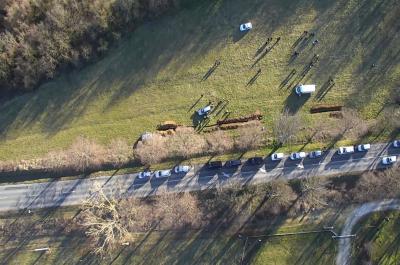 A tűzeset miatt teljes szélességében lezárták a 4-es főút érintett szakaszát, a forgalmat mellékutakra terelik.