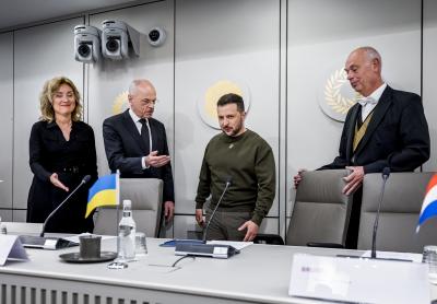 Zelenszkij szerdán késő este, váratlanul érkezett Hollandiába, hogy találkozzon a holland politikusokkal és a miniszterelnökkel, Mark Ruttével, továbbá a feltételezett orosz háborús bűnök ügyében nyomozást folytató hágai Nemzetközi Büntetőbíróság (ICC) vezetőivel. Zelenszkij várhatóan Alexander de Croo belga szövetségi kormányfővel is találkozik.
