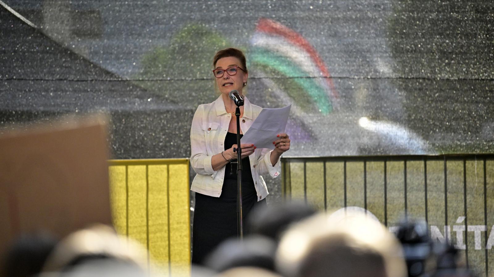 Ő először Örkény Istvánt idézte – „hiszem, hogy győzni fog a szakmaiság” –, aztán felhívta a figyelmet, hogy az nem lehet, hogy elhivatott embereket veszítünk el, és katonaként gondolunk a tanárokra. A Kossuth- és Jászai Mari-díjas színésznő ezután köszönetet mondott a lányát tanító tanároknak. Szerinte a 24. órában vagyunk, hogy a döntéshozók visszavonják a státusztörvényt.
