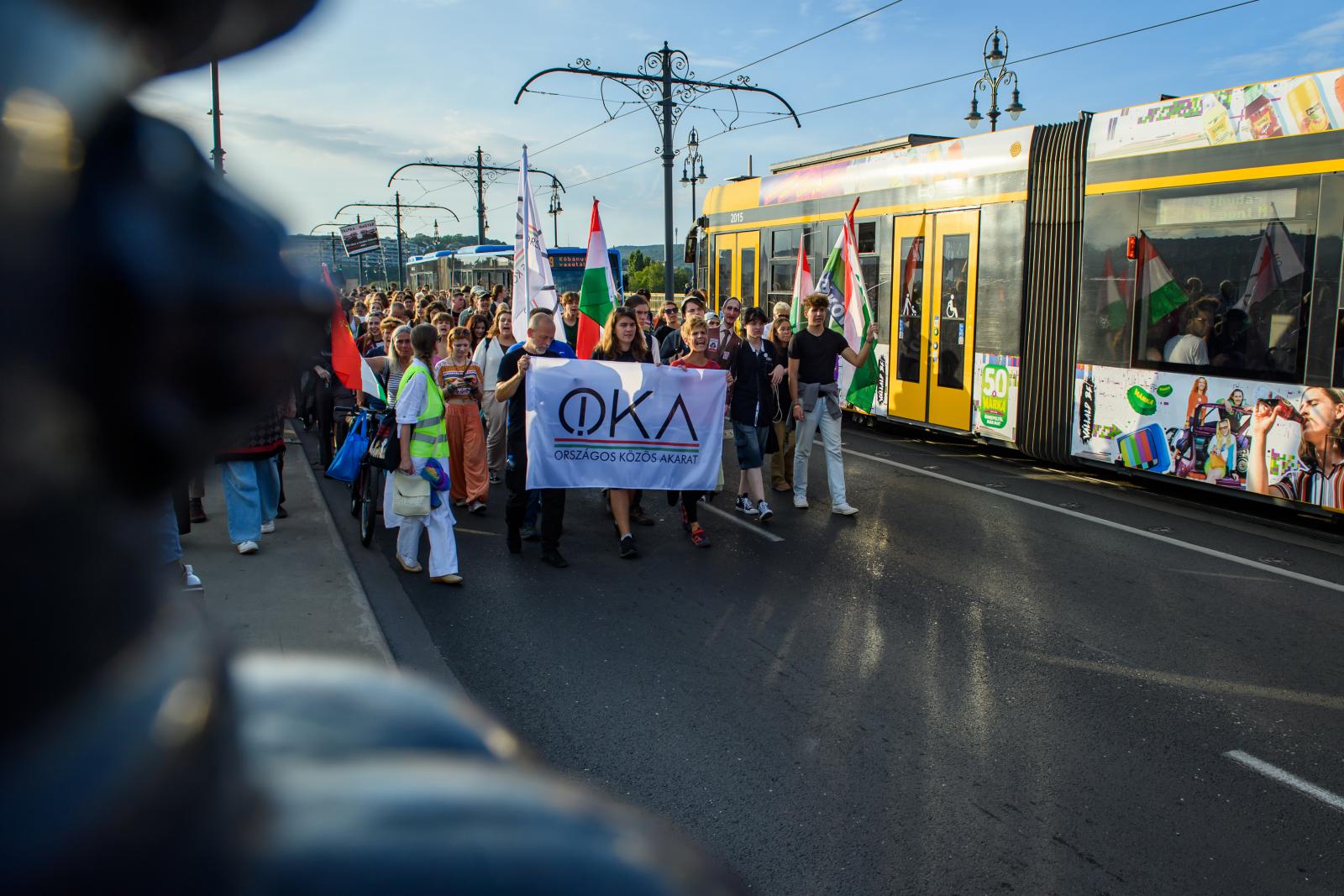 Félpàlyás lezárás mellett körülbelül a híd háromnegyedét töltik meg a tüntetők.