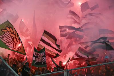 A hazai szurkolók megadták a módját az összecsapás felvezetésének, óriás-koreográfiával és vélhetően UEFA-büntetést eredményező tűzijátékkal fogadták a csapatokat. Ennek következményeként a játékvezetőnek néhány percre félbe is kellett szakítania a találkozót, Dibusz kapuja előtt ugyanis jókora füst gomolygott.