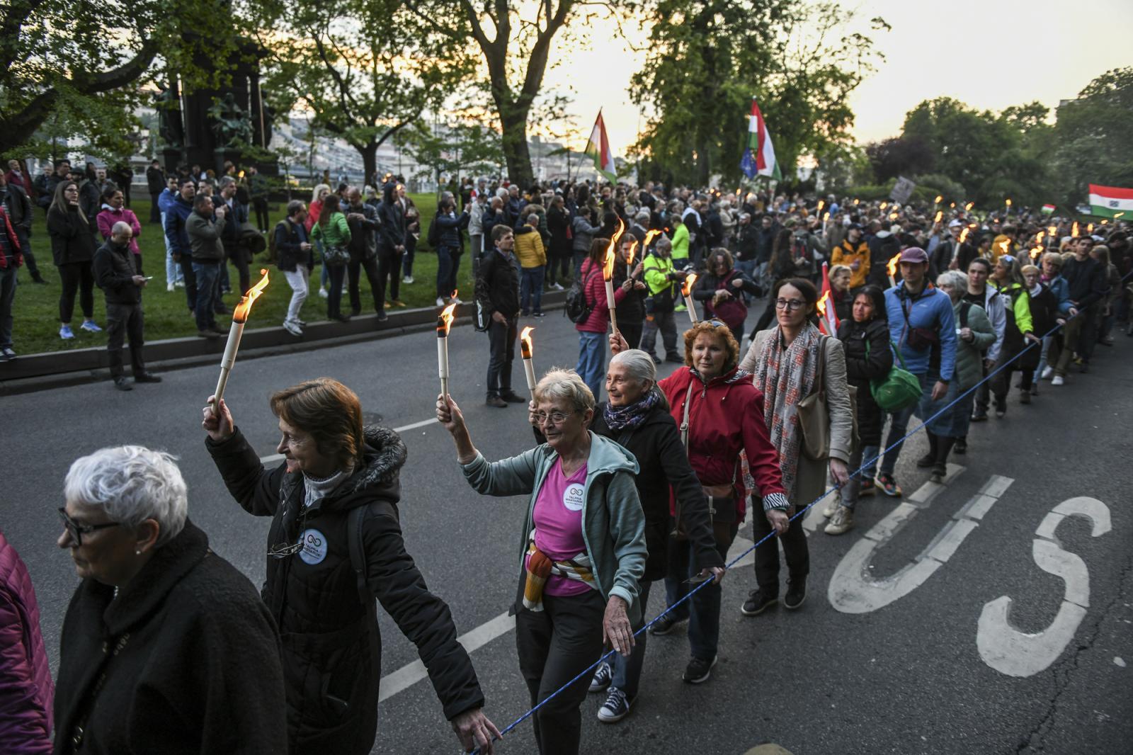 Ez egy zsinórt jelent. Ő és a tüntetők ezzel emlékeznek a gyermekbántalmazások áldozataira. Előtte a szervezők kérésére a tüntetők meggyújtották a fáklyáikat, vagyis fellobbant az összetartozás lángja.