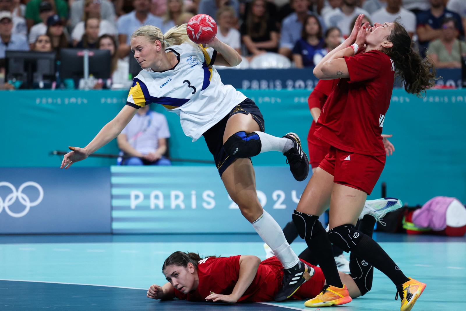 21-25. perc: Klujber használta ki a védpk figyelmetlenségét, de azonnal jött a válasz Hanssontól (9-12). Papp két kézzel ellökte Lindqvistet, a svéd játékost ápolni kellett a 21. percben. A játékvezetők videóztak, majd két percre kiállították Pappot. Roberts lőtt gólt 8 méterről (9-13). Pásztor harcolt ki büntetőt, amit Kluber értékesített (10-13). Carlson a 23. percben kilőtte a jobb felső sarkot, Vámos lerohanásból azonnal válaszolt (11-14). Carlson 9 méterről nem találta el a kaput, Győri-Lukács lépett ki, pontos indítást kapott és nem hibázott (12-14). Koppang váratlanul lőtt, megint három lett a különbség (12-15).