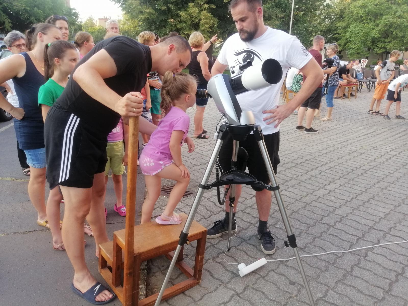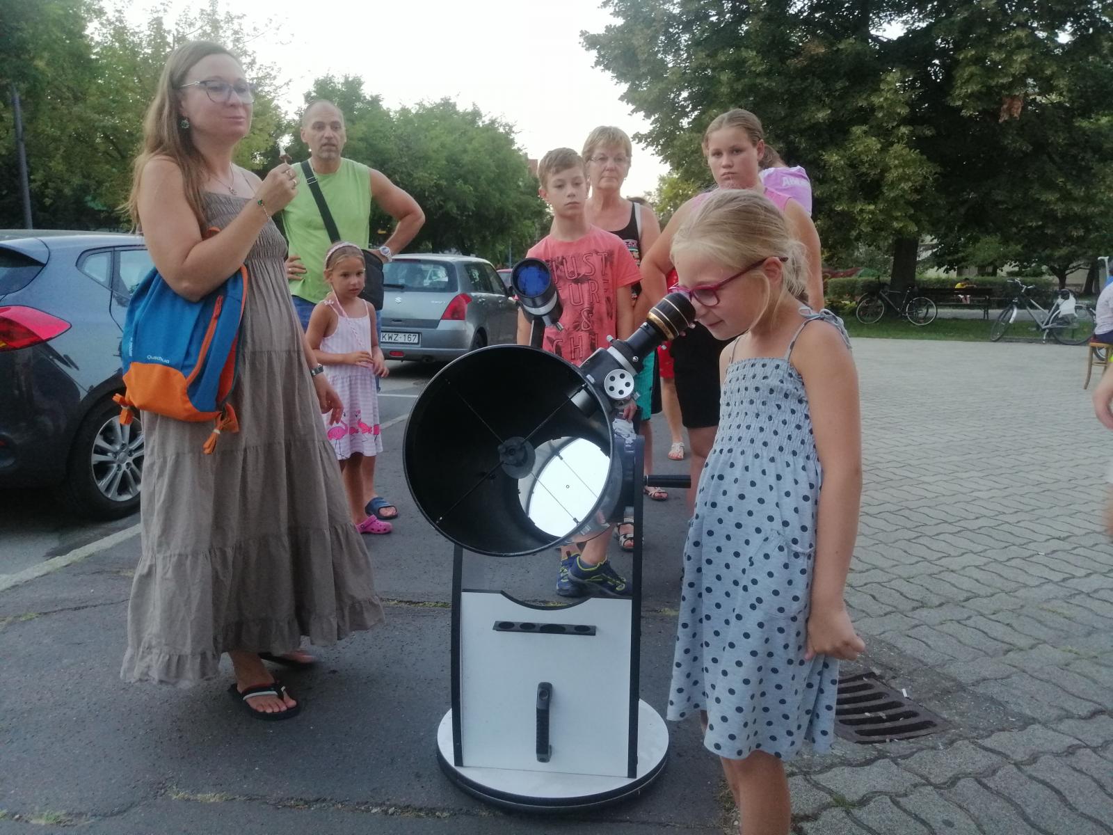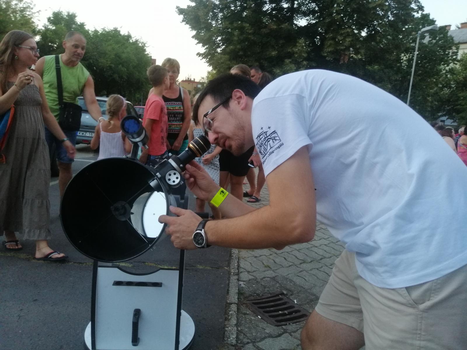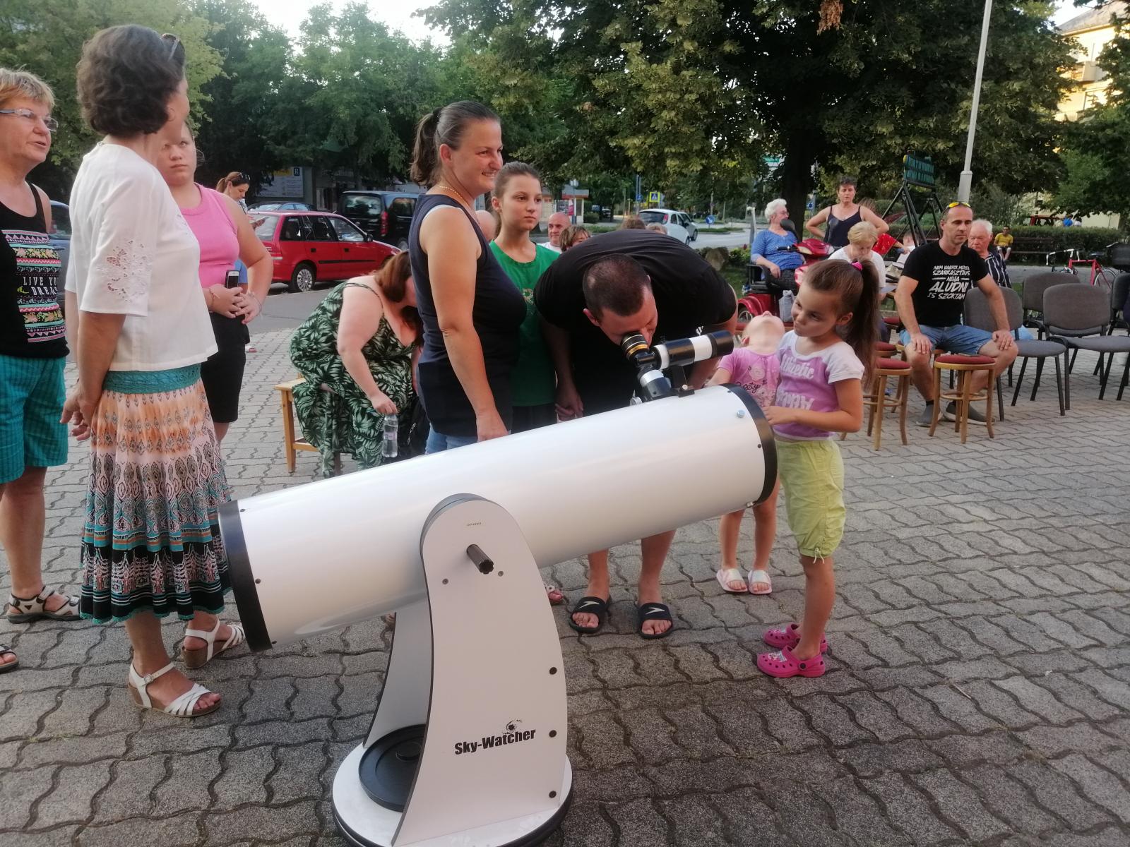 Az idén ötödik éve futó Egy hét a csillagok alatt országos programsorozat egyik elő­adására érkeztünk a szentesi könyvtár elé több tucatnyi, életkorukat tekintve igen széles skálán mozgó érdeklődővel együtt. A kampány annak idején Szegedről indult, a cél az volt, hogy szerte az országban minél több hasonló távcsöves bemutatóval lehessen találkozni. Idén több mint 180 rendezvényen igyekeztek szinte kézzelfogható közelségbe hozni a világűrt.
