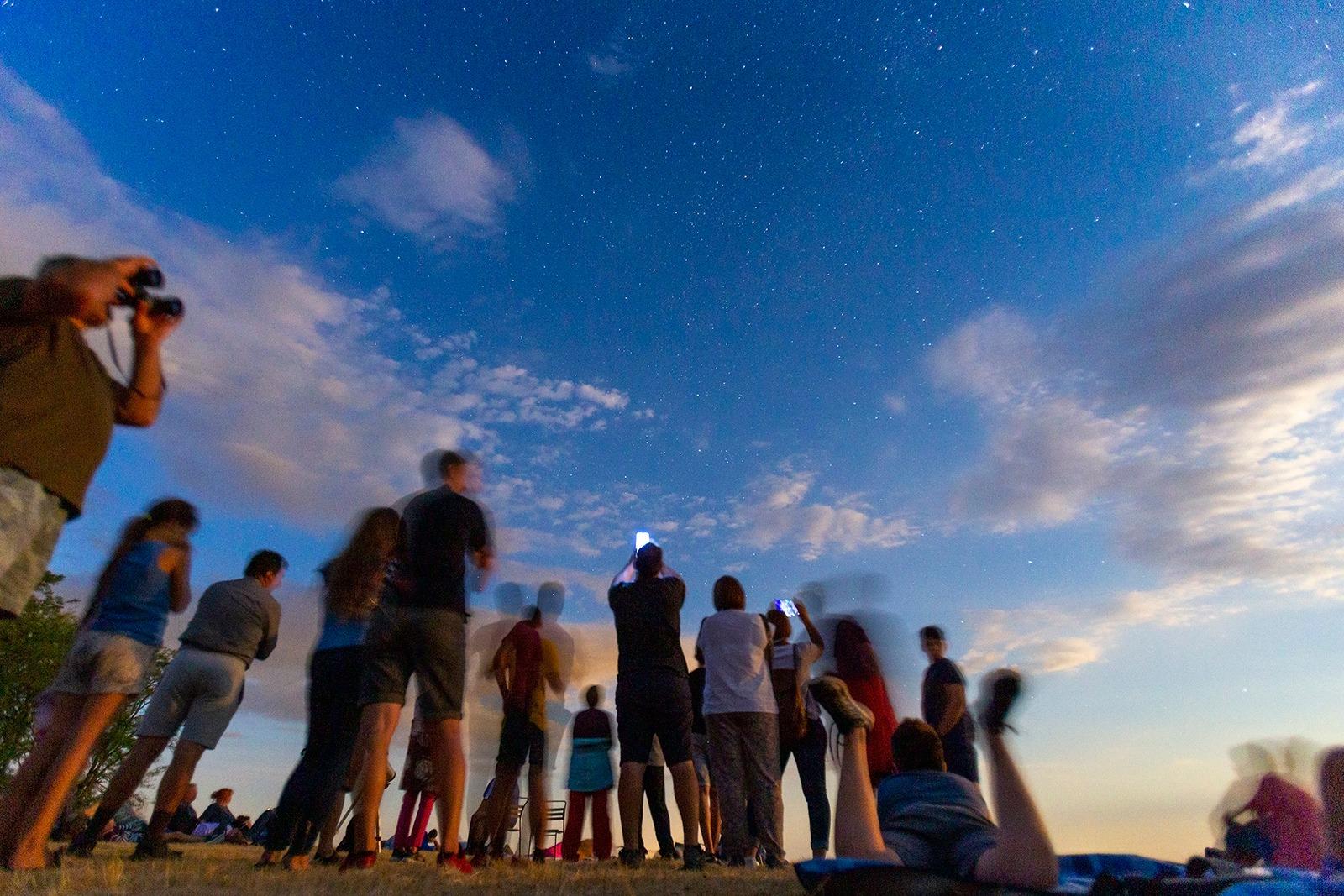 Az embert talán már száz- meg százezer évekkel ezelőtt is hol elbűvölték, hol elrémítették az éjjeli égbolt csodái. Az érdeklődésünk ma sem lankad, vonz, ami elérhetetlen, ismerni akarjuk, amiről talán sosem fogunk mindent tudni. Ezúttal a Szegedi Csillagvizsgáló két elkötelezett tudományos ismeretterjesztő harcosa, Barna Barnabás csillagász és Kelemen Tamás bemutató csillagász, asztrofotós sietett ebben a segítségünkre. Az eseménysorozat fő irányát az augusztus közepe táján látható Perseidák meteorraj jelölte ki. Tévedés azt gondolni, hogy meteor csak nyáron hullik, és bár kétségkívül a Perseidák serege a legnépszerűbb, de például a Geminidák még ennél is zsúfoltabb égi jelenség. Vele mindössze annyi a gond, hogy telente keresztezi útját a bolygónk, és lássuk be, nyáron sokkal romantikusabb elfoglaltság kifeküdni a fűre hullócsillagot nézni, mint decemberben. A meteorrajokat, legyen akár Perseida, akár Geminida, Taurina, arról nevezte el az emberiség, ahonnan úgy vélte, hogy érkeznek. A meteor csíkot húz, ezt képzeletben visszafelé meghosszabbították, és mivel bárhová is szegezzük a tekintetünket az égbolton, biztos, hogy a 88 csillagkép valamelyikén akad meg a tekintetünk. Így lett a névadó az eredőnek vélt Perseus, Iker, Bika, meg a többi csillagkép.