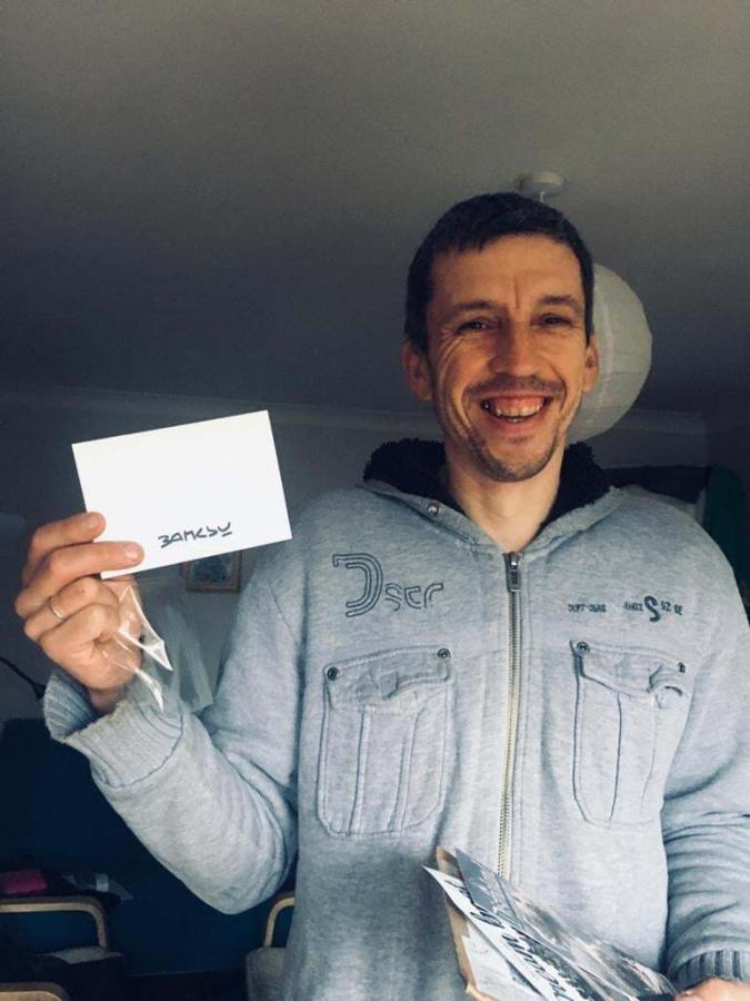 Állok a konyha mellett koszosan, kezemben a telefon, ismét megkérdezem a tagot üzenetben: ki vagy te? Válaszol azonnal, ez nem fontos, köszöni az ajándékom, az övé a borítékban van. Pár szórólapot lelek, Banksy anyagai. Kérdezem a mecénást, mik ezek a szórólapok?
