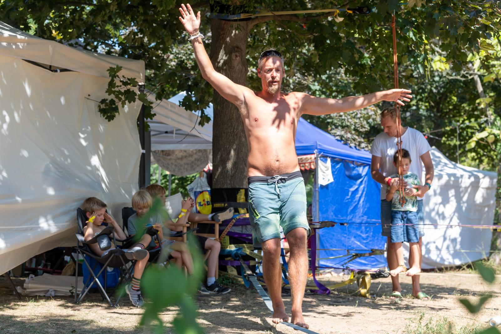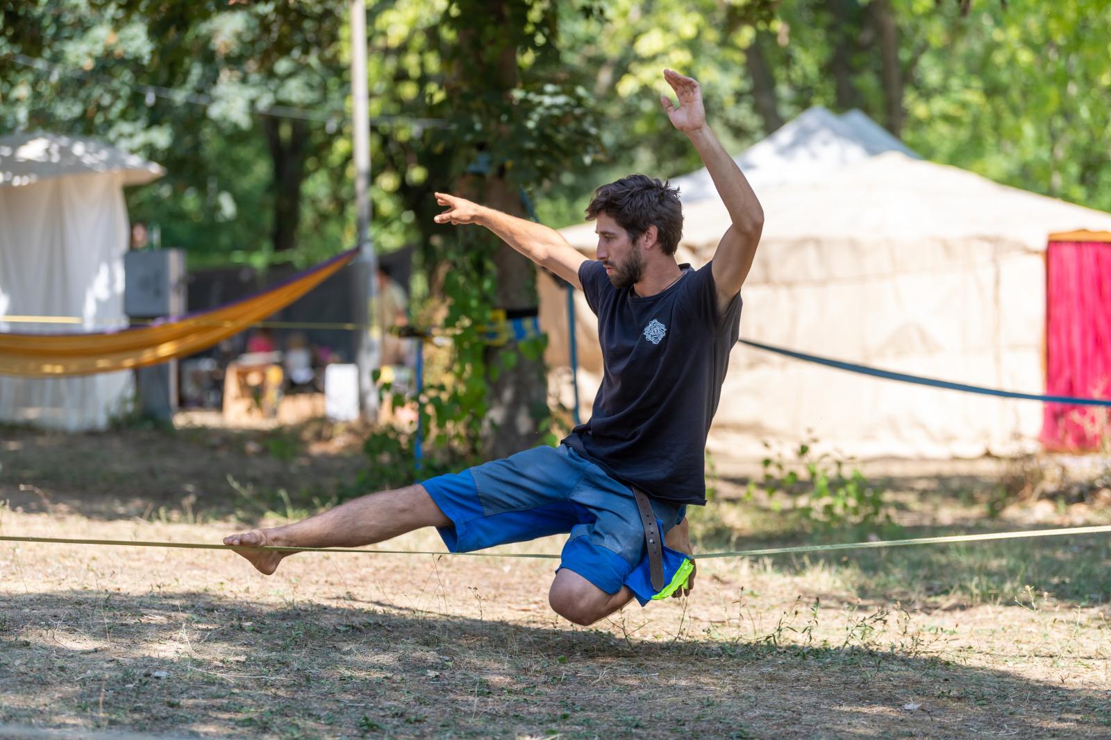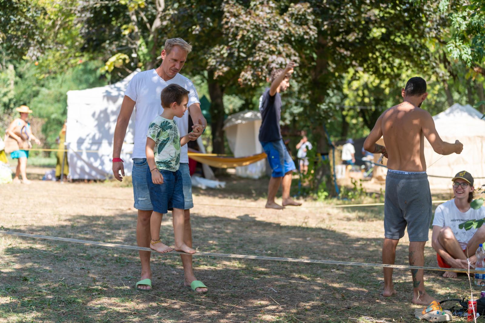 Az augusztusi nap perzselő, a fák alá betérve azonban nem csak a hűs miatt érezzük azt, hogy egy másik világba érkeztünk. Nyugalom, derű árad az emberekből, és ahogy a fotóriporter kolléga is megjegyzi: itt valahogy mintha pár taktussal lelassult volna a világ. – Ez a 9. találkozó. A résztvevők létszáma változó, de kifejezett szándékunk, hogy ezer fő fölé ne menjünk. Akkor már nem ugyanaz lenne a hangulat. Bár mindig vannak újak, a jelenlévők legnagyobb része évek óta visszajár, és hazaviszik ezt az ökologikus életmódszemléletet az ország különböző pontjaira. Év közben talán nem is tudnak találkozni, itt viszont összejönnek, kapcsolódnak egymáshoz. Ennek a hangulatnak a többezres létszám nem tenne jót. Szeretnénk, ha megmaradna ilyen intimnek, családiasnak, ez az egyik fő erőssége – meséli Forrai Mária Melinda, Marcsi, a Gyüttment Találkozó főszervezője.