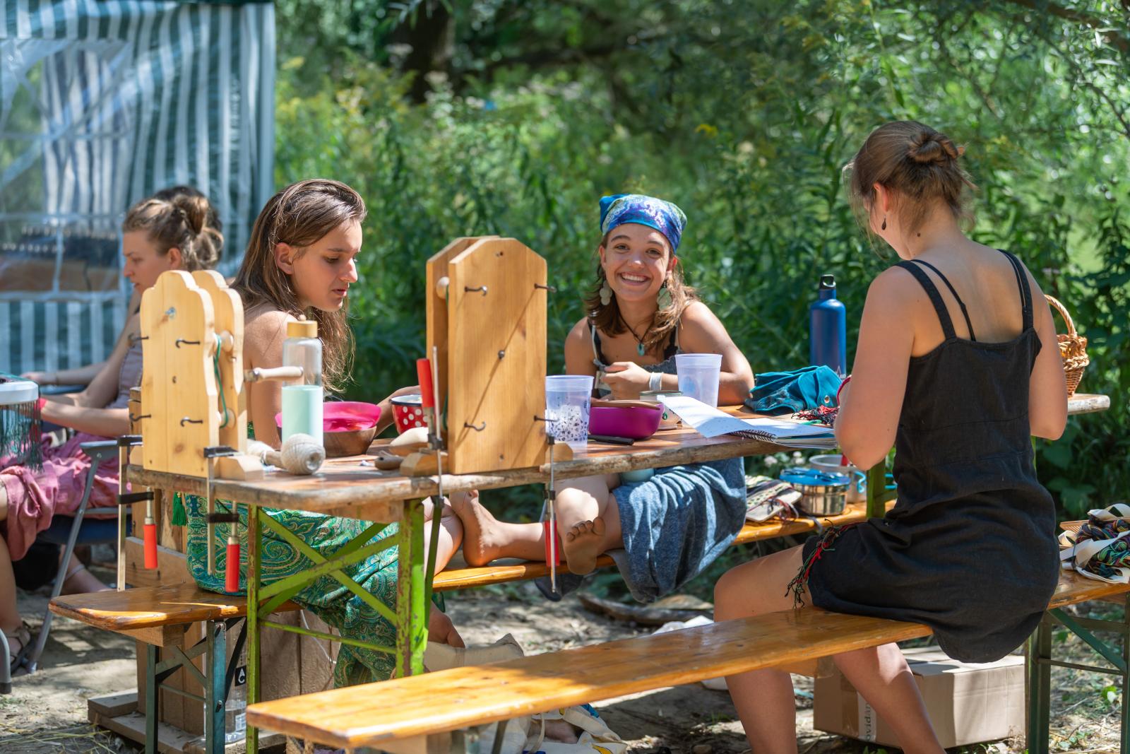 Aki ideérkezik, valóban a találkozón hirdetett értékek szerint él. Műanyagot csak elvétve látunk, mindenki a saját tányérjával, evőeszközével, ivókulacsával jár föl-alá. Nem vagyunk elég felkészültek, állapítjuk meg magunkban kicsit szégyenkezve, elfelejtettük, hogy a fesztivált teljesen hulladékmentesnek hirdették, így ha nem leltünk volna a táska mélyén egy „jó lesz ez valamire” okból eltett papírtörlőre, a tenyerünkbe kaptuk volna a süteményt. A limonádé vásárlásáról le is mondunk, kínosnak éreznénk a pultnál elővenni a napok óta magunkkal hordott, ivóvízzel mindig újratöltött ásványvizes műanyag flakont. Némi elégedettséggel tölt el, hogy papírtörlővel kapcsolatos elméletünkre viszont remekül rímel később a Rodrigó néven bemutatkozó vidám férfi magyarázata. Ez a permakultúra lényege, érvel széles gesztusokkal, hogy a hulladék nem szemét. Ne gyűjts minden kacatot, de ha van helyed, tedd félre, ki tudja, lehet, hogy 10 év múlva lesz belőle valami.