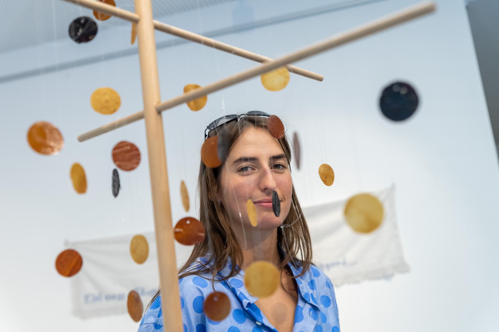 – Eszter elmesélte, hogy ő is hímzett már ilyen térképet, és meghívott egy Common Jamre, azóta rendszeresen jövök. A befőzés számomra elsősorban meditatív folyamat, az alkotásom is erre reflektál – meséli Anna. – A lekvárt hosszú órákon át sütőben aszalom, utána a nagymamámtól örökölt régi pogácsaszaggatóval kivágom a karikákat. Ez egyszerre fa és totem, emlékezés Eszterre, a kapcsolódásunkra, de főleg a belső nyugalom megtalálásáról szól. A szüretelés, a fára mászás pedig visszahozza a természetet a városi közegbe, a galéria terébe, de a a fa az élet szakaszaira és a folytonos megújulásra is emlékeztet. Korábban a befőzést mindig otthon, anyukámmal és a testvéremmel csináltam, azóta vannak más tapasztalataim is, egyedüli befőzésekről és a közös Common Jam-es befőzésekről is. Eszter sok mindent tanított nekem, például sokat vonatoztunk együtt a szedésekre, jó beszélgetéseket kaptam tőle. Az elvesztése azért is szíven ütött, mert azt hittem, még van időnk. De azok a dolgok, amikről beszéltünk, itt vannak velem, folyamatosan forgatom ezeket magamban.