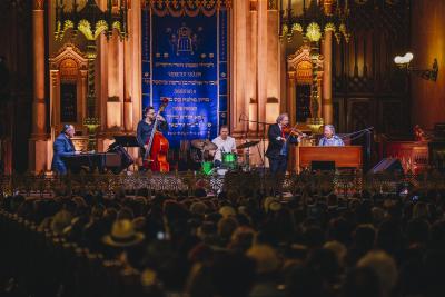 Korcsolán Orsolya estje az engesztelés napja, a jom kippur megidézésével kezdődött. Max Bruch 1881-ben bemutatott műve, a Kol Nidré (minden fogadalom) jom kippuri dallamokból építkezik, amelyekkel az egykori berlini főrabbi, Abraham Lichtenstein ismertette meg a protestáns német zeneszerzőt. A Kol Nidré valójában nem ima, hanem kinyilvánítása annak, hogy minden fogadalom, amelyet nem emberek felé tettek, legyen semmis. Mint az est házigazdája, Sugár Gergely kürtművész – a hegedűművész férje – elmondta: az arameus szöveg a középkorban keletkezett, amikor nagyon sok zsidót erőszakkal betérítettek kereszténynek. A koncert tematikájába – mindaz, ami a Bernstein-filmből, a Maestróból kimaradt – pedig azért illik bele, mert Leonard Bernsteinnek nagyon fontos volt a zsidó identitása. Bernstein a zene közelébe is a bostoni zsinagógában került, ahol Izso Glickstein, azaz Garai Izsó volt a kántor, aki a budapesti Zeneakadémián Hubay Jenő tanítványa volt. Garai Izsó aztán kántornak tanult Bachmann Jakab főkántornál, épp itt, a Rumbach utcai zsinagógában.