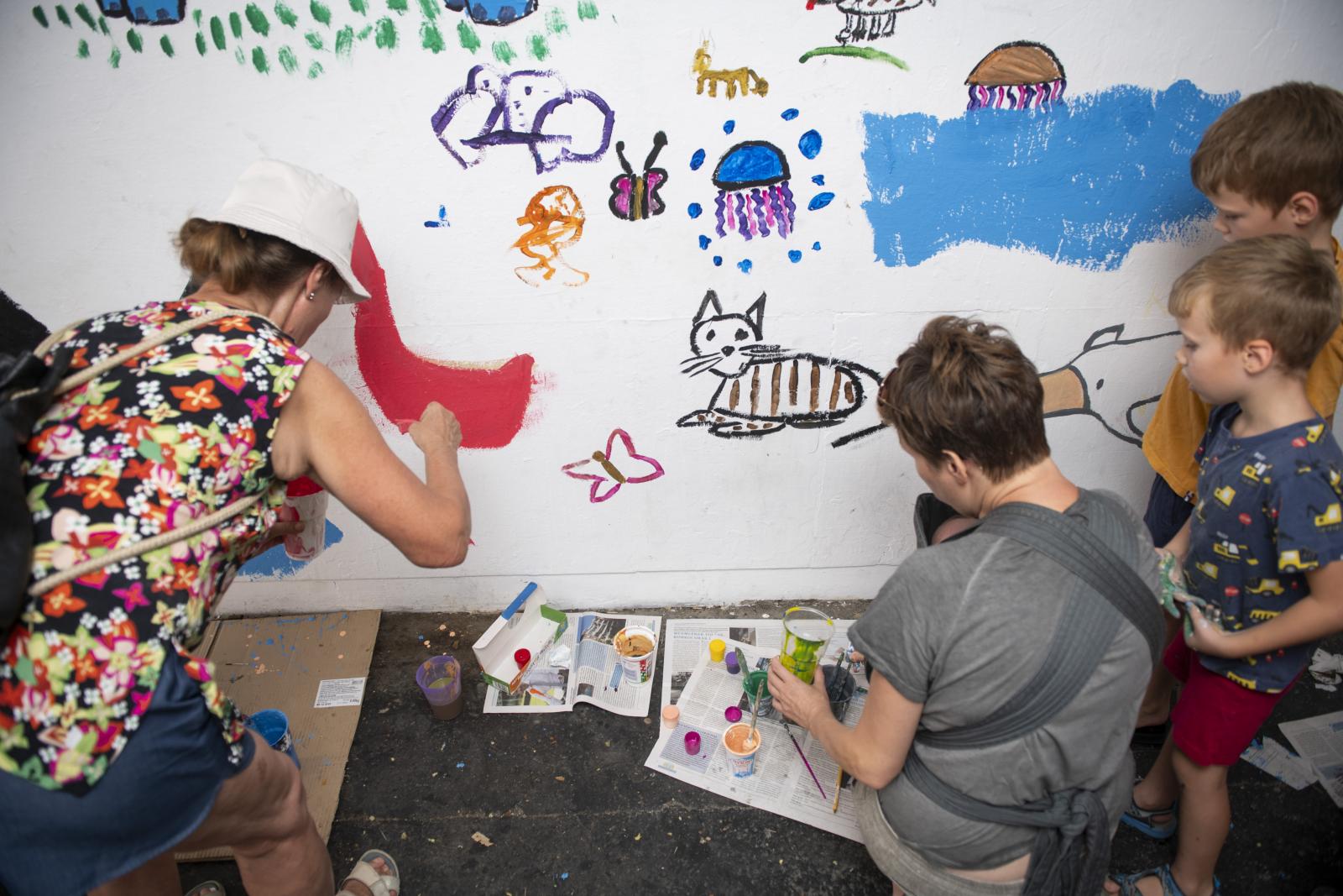 Az eszközöket, vagyis a festékeket, ecseteket az egyesület biztosítja a résztvevőknek. Szabad teret adnak a közösségi élménynek, bár van egy alapkoncepció, amibe a rajzoknak érdemes beilleszkedni. A mostani eseményen a bal oldalon az állatok – köztük nyuszik, pandamaci, csiga, két kis patkány és egy polip – és a budapesti állatkert főbejárata kapott helyet, míg a jobb oldalon a Közlekedési Múzeumhoz kapcsolódó járművek, hőlégballon, repülő, autók, hajók sorakoztak.