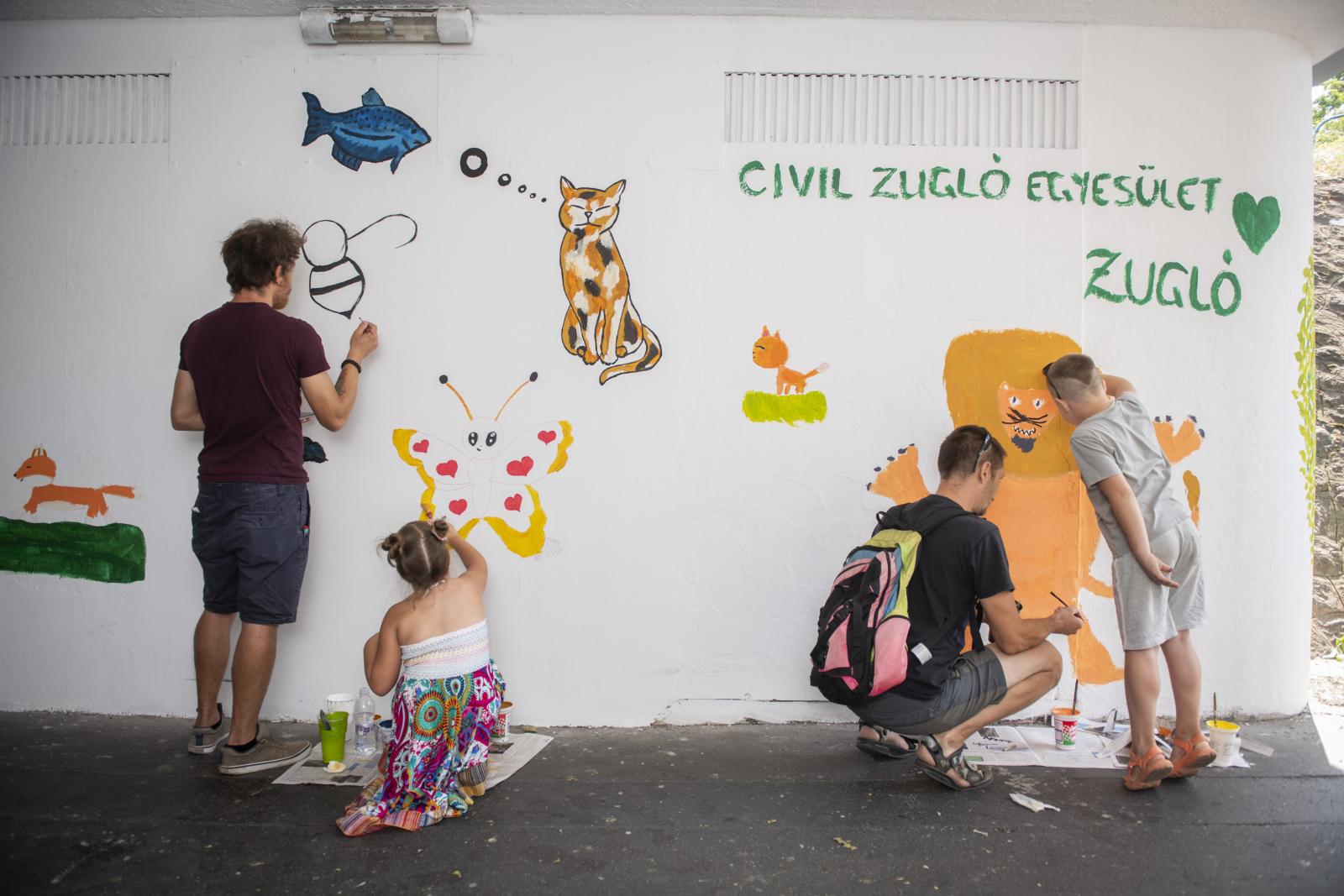 Várnai László, a Civilzugló Egyesület vezetője lapunknak elmondta, hogy az aluljárók azért jó platformok, mert teret adnak a kreativitásnak, és ritkán van a családoknak alkalmuk arra, hogy a szülők közösen alkossanak a gyerekekkel. Sokszor azt veszik észre, hogy az anyukák és apukák jobban élvezik a pingálást, és voltak olyan esetek, amikor már a gyerekek könyörögtek, hogy induljanak haza, mivel a szülők éppen alkotásban voltak, és nem tudták letenni az ecsetet. Mosolyogva megjegyezte: nagyon kellemes azt látni, amikor komoly apukák belefeledkeznek mondjuk egy polip megfestésébe.