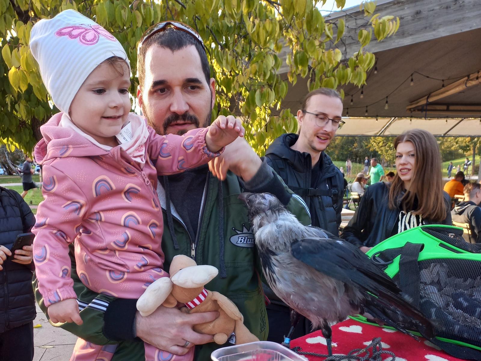 Veres Dorottya, akinek a varjúját a helyszínen megsimogathatták az érdeklődők, a Visszhangnak elmondta, hogy 12 éve foglalkozik madármentéssel. Akkoriban egy társasházban lakott, és a történet egy kis rozsdafarkúval indult, amely kiesett a fészekből. Aztán a madárka testvérét is meg kellett menteni, majd egyszer csak azt vette észre, hogy mindenhol madár van a lakásban. Végül a dolmányos varjak mellett kötelezte el magát, ugyanis ők a legszociálisabbak. Egyszerűen szereti nézni a röptüket, mert olyankor is kitekintenek jobbra-balra, állandóan érdeklődve a környezetük iránt. Emellett hihetetlen játékos lények.