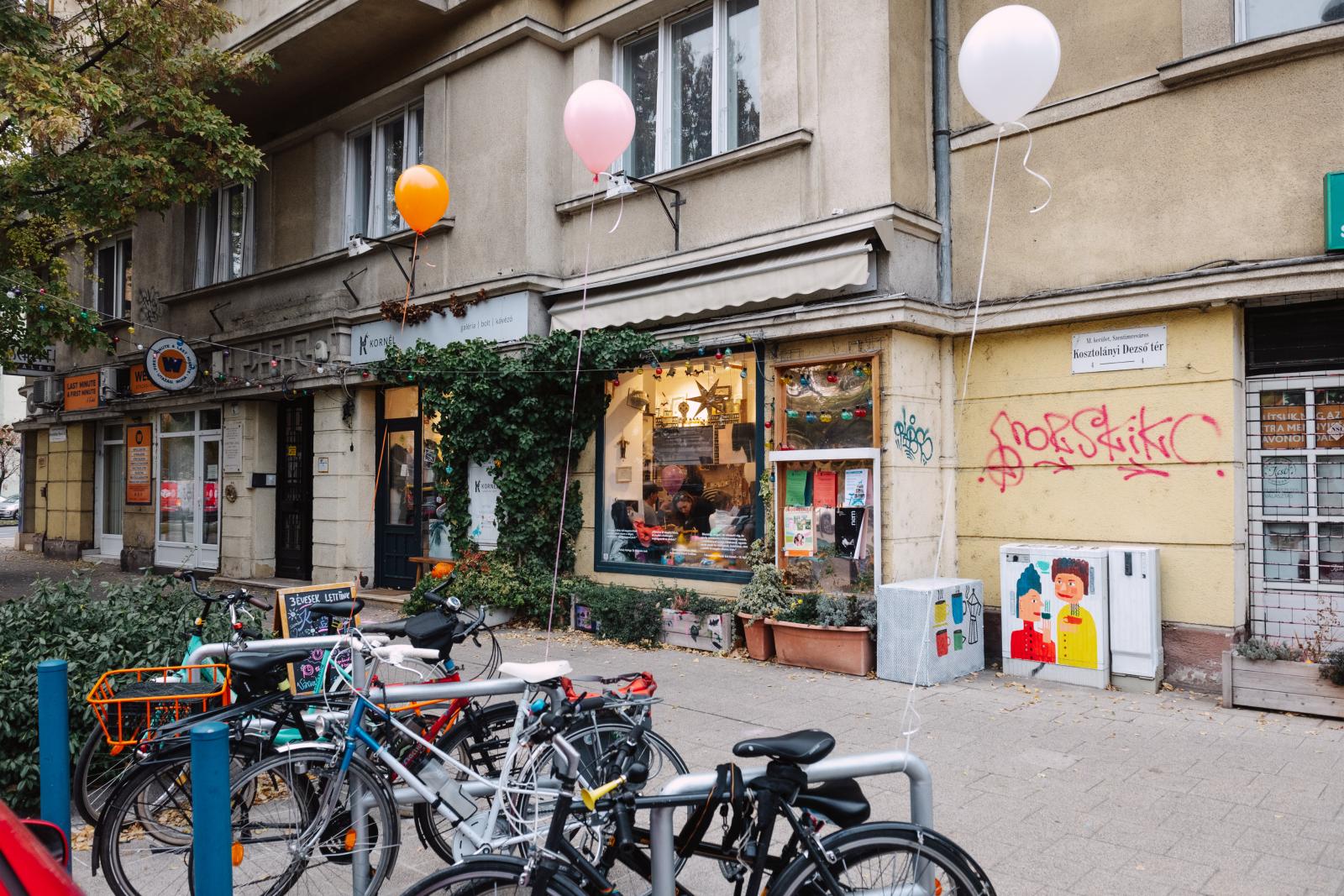 Sokan térnek be a Kornélba akár kutyasétáltatás vagy bringázás közben is. Bár a szomszédos park nagy fejlődésen megy át – van már futópálya és köztéri tornaeszközök, a játszóteret pedig az idén újították fel –, hiányzik az alapvető infrastruktúra, nincs elég ivókút, mosdó. Közel s távol eddig nem akadt biciklitámasz sem, holott errefelé sokan járnak két keréken, nem csak fiatalok. A Bartókon végigsuhanva alig fél óra alatt a belvárosba juthatunk, de a dél-budai vérkeringés utolsó csomópontja is a Kosztolányi Dezső tér, innen kezdődik a kertváros. Lassabb itt az élet, belefér a tekerés, és a kerékpársáv kialakítása óta olyanok is bringára kaptak, akik eddig féltek a forgalomban. Ezt mesélik a kerekparparkolas.hu újonnan indult közösségi vállalkozás alapítói is: Dormán Emese, Kovács Virág és Török Vazul mindhárman lelkes bringások, ketten korábban együtt dolgoztak a Magyar Kerékpárosklubban. Őket kérte fel a Kornél, hogy segítsenek a biciklitároló létrehozásában, a tervezéstől az engedélyeztetésen át a megvalósításig.