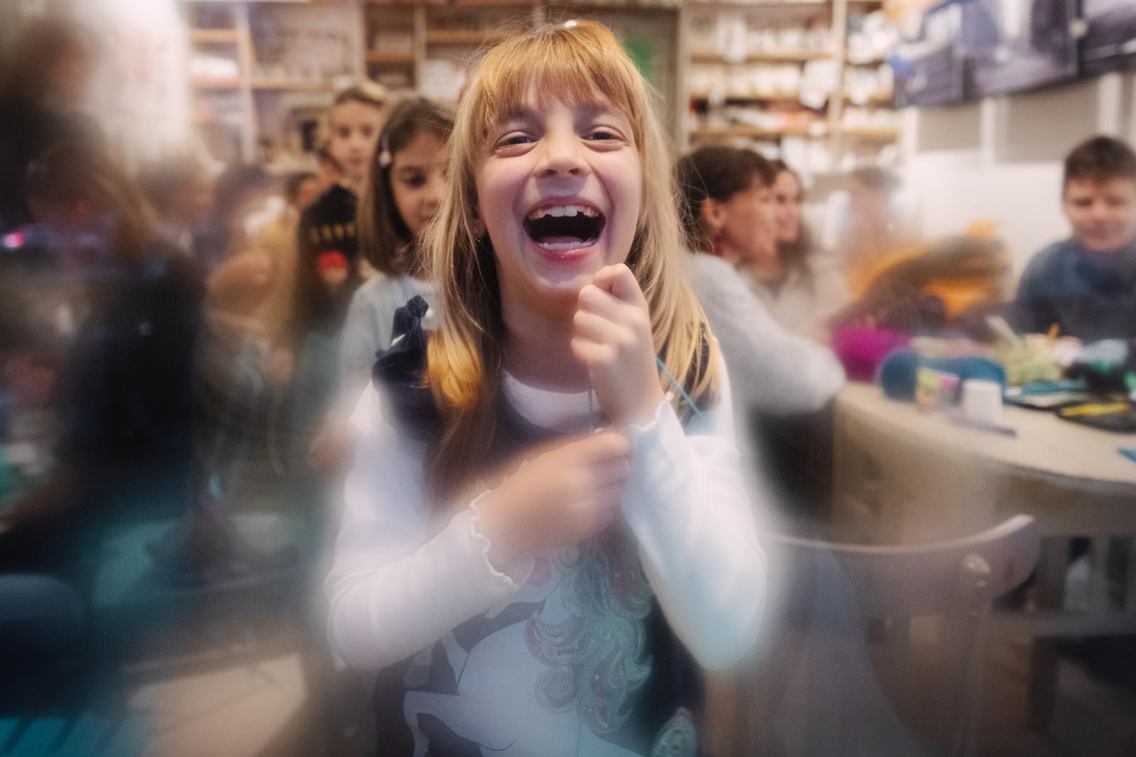 A Kornélban a kiállítások, koncertek mellett rendszeresek a meseterápiás és más, az érzelmi életet fejlesztő, önismereti foglalkozások, valamint a kézművesprogramok, melyek szintén lehetnek terapeutikus hatásúak. A születésnapi ünnepségen a nemrég indult közösségi horgoló workshop résztvevőivel beszélgettünk. „Bár én horgolni tanultam meg előbb, most főként kötök, ruhákat, pulcsikat, felsőket készítek. Nagyon szeretem ezt egyedül csinálni, közben teljesen ki tudom zárni a külvilágot, és flow-ba kerülök. Persze együtt is jó horgolni, van egy közösségépítő ereje” – mondja Benke Eszti, a workshop vezetője. Bátki Anna és tízéves kislánya, Rita alkot lelkesen mellette. Anna akkor kezdett horgolni, amikor a kislánya elkezdett kúszni-mászni. Könyvet olvasni nem tudott, miközben fél szemmel a babájára figyelt, de a horgolás pont jó volt, hogy kikapcsolja, és valami hasznosat is csináljon közben. Később Rita kérte anyukáját, hogy tanítsa meg őt is, már anya-lánya alkotásokat is csináltak együtt.
