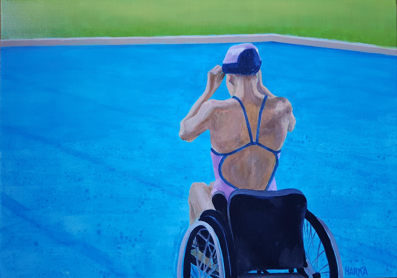Nála is szépen megférnek egymás mellett a falon a régi, klasszicizáló családi festmények és a színpompás kortárs művek. Köztük azok a portrék, amiket kerekesszékes sportolókról festett. „A környékén volt egy faültetés, ahol rengeteg, fogyatékkal élő ember gyűlt össze.