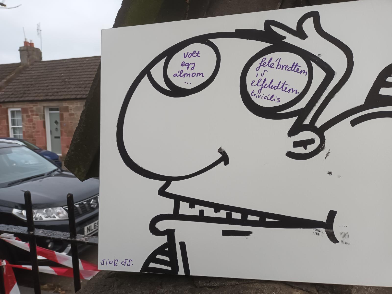 Újabb karcolások Fekete Valér Sior Skóciában élő karikaturista-graffitis szerzőnktől, aki történelem–francia szakos tanárként ment el családjával az országból nyolc éve. Általában a hét minden napján dolgozik. Konyhán főz, épületet bont, kertben vág rendet. Vagy éppen megrendelésre dekorál, az étterem kirakatától az iskola bejáratáig.