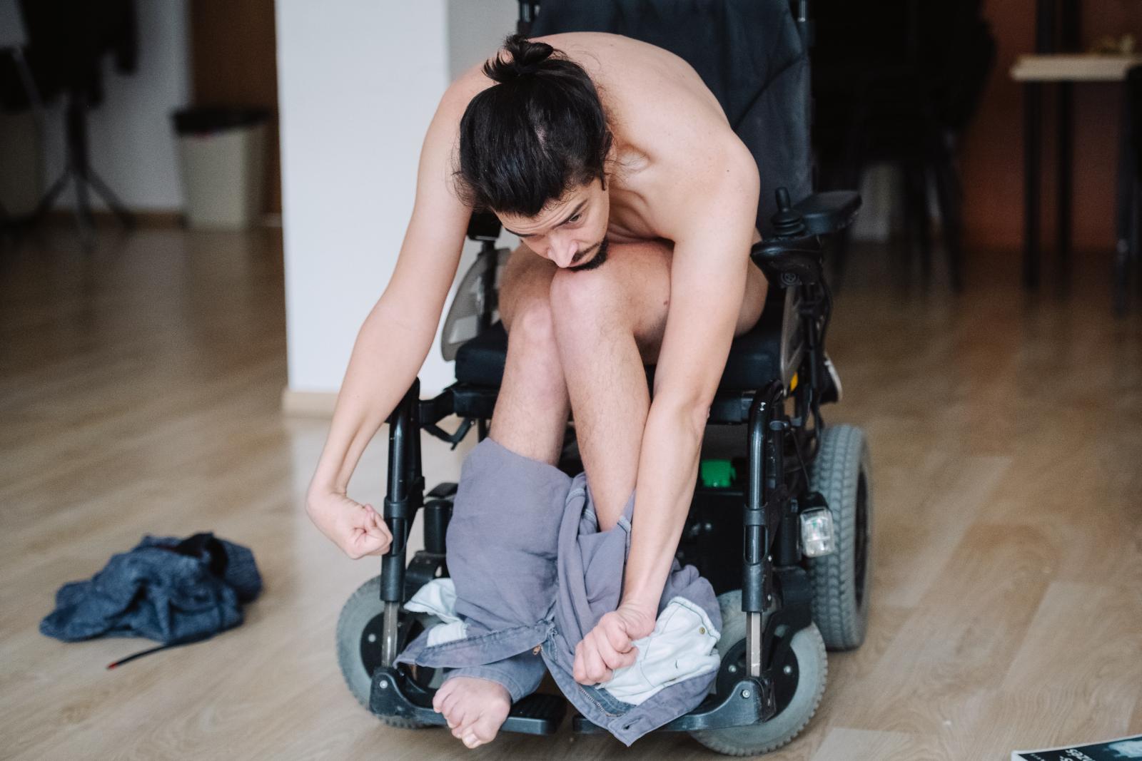 – Amikor fiatalon bekerültem a MEREK-be, folyton jöttek az új dolgozók, köztük fiatal lányok, hogy velem gyakoroljanak, mert én voltam a legkönnyebb. Bejöttek a szobámba, és megkérdezték, mehetünk-e fürdeni. Nem volt választásom, nekik is lehetőséget kellett adni, hogy kipróbálják, én meg ha elutasítom, akkor nem tudok fürödni, vagy csak sokkal később. Ezért bele kellett ugrani ezekbe, és egyre jobban kiirtották belőlem a szemérmességet. Utána ez a készség nagyon jól jött nekem, mert amikor nincs támogató szolgálat, vagy nagyon limitálva érhető el csak, akkor a Facebookról, innen-onnan gyűjtöm az önkéntes segítőket, hogy tudjam a mindennapjaimat hatékonyan szervezni. Akárki jön, be tudom őket tanítani, mi a személyi segítés.