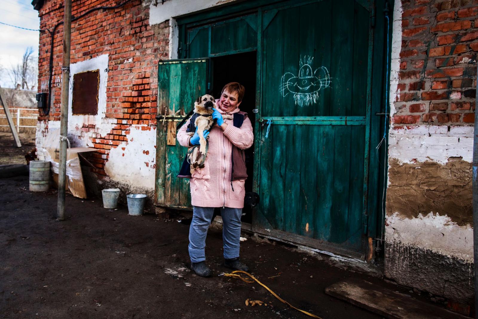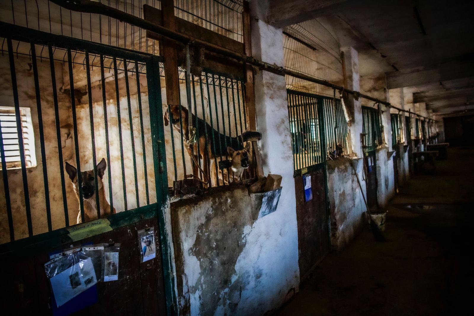 A legnagyobb istállóba belépve fülsiketítő csaholás fogad. Több száz kutya zendít rá, egy bokszon négy-öten osztoznak. Az intézmény az ostrom során tíz találatot kapott, a tető a lezuhanó törmelékek miatt sok helyen beszakadt. Egyelőre az ENSZ címerével ellátott, átmeneti fehér ponyvával takarták le, hogy legalább a leghidegebb hónapokban megvédje az állatokat az időjárás viszontagságaitól. Egy elkerített részleg kórházként szolgál: a kutyák apró ketrecekben várják a gyógyulást. Mellettük óriási dézsában mázsányi használt, ütött-kopott ruha. A kutyák alomjaiba szánják őket. Ennyi állat ellátásához legalább 20-25 önkéntes munkájára lenne szükség, mindennap. Ehhez képest négy-öt férfira és ugyanennyi nőre számíthatnak. A legtöbb férfit elviszik katonának, mire beletanulna a munkájába.