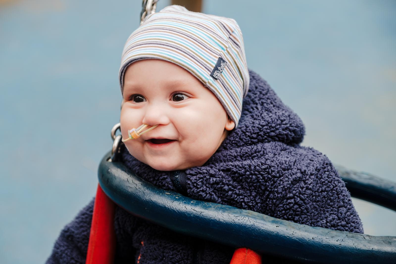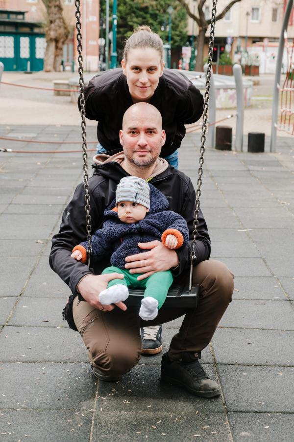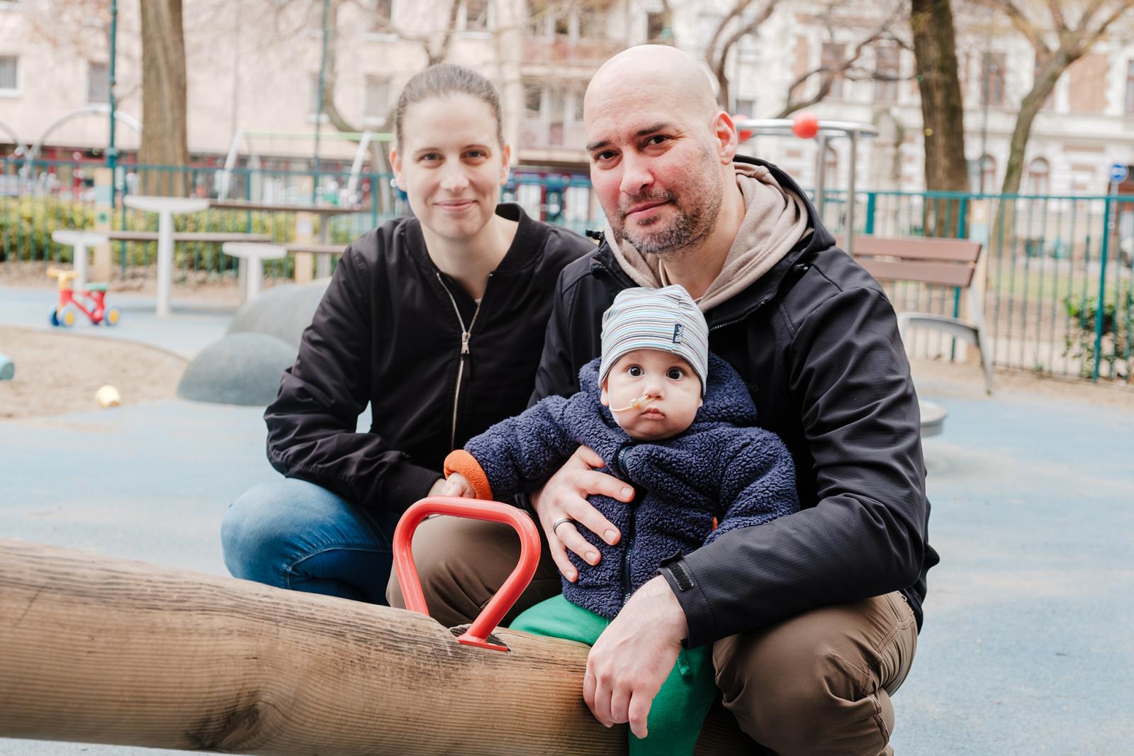 A fiatal szülők derűsen mosolyognak, pedig nem csupán az átlagos kisgyermekes időszak kihívásait élik, az éjjeli felkelésekkel, a napközben is intenzív gyermekgondozási feladatokkal. Amióta a diagnózist megkapták, már erre várva is bekúszott az életükbe a bizonytalanság, a kisbabájukért való aggódás, a kiszolgáltatottság érzése, noha minden mondatukban elismerik az orvosokat, nővéreket, akik a tőlük telhető legjobbat biztosítják, szinte tágabb családként állnak mögöttük, a magyar egészségügy áldatlan állapotai közepette.