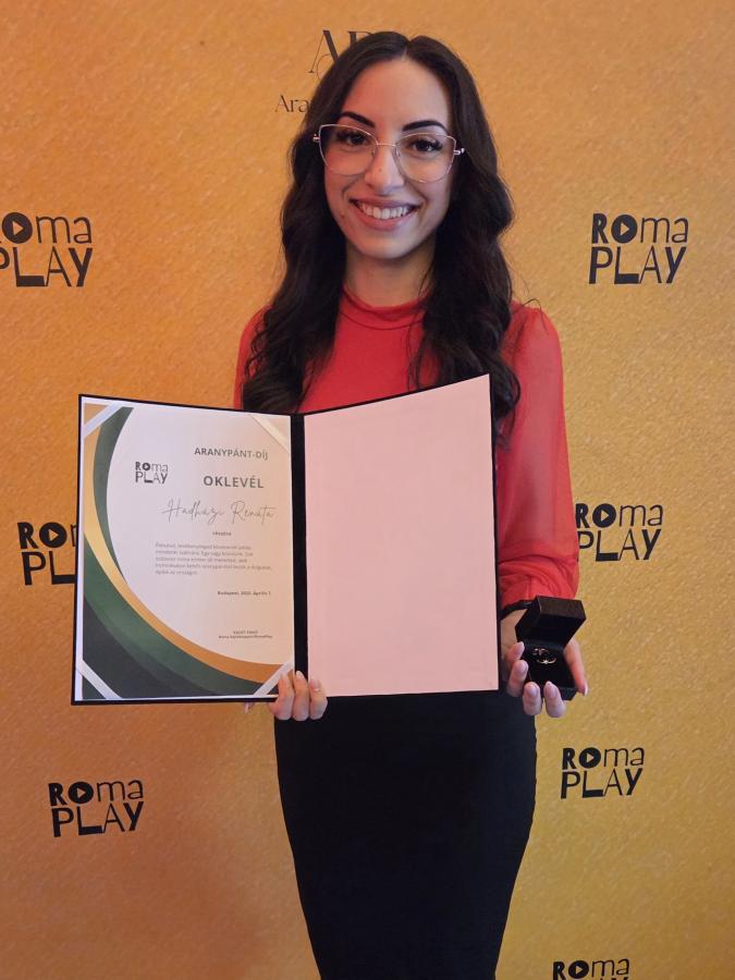 A közönség szavazatai alapján Hadházi Renáta, tiszaújvárosi pedagógus kapta meg a 2025-ös Aranypánt-díjat, amelyet április 7-én, a nemzetközi roma nap alkalmából adtak át ünnepélyes gála keretében a Budapest Jazz Clubban – számolt be a Roma Sajtóközpont.