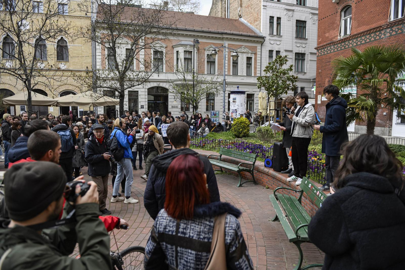 Diákok készülnek a tüntetésre. Néhány fotó.
