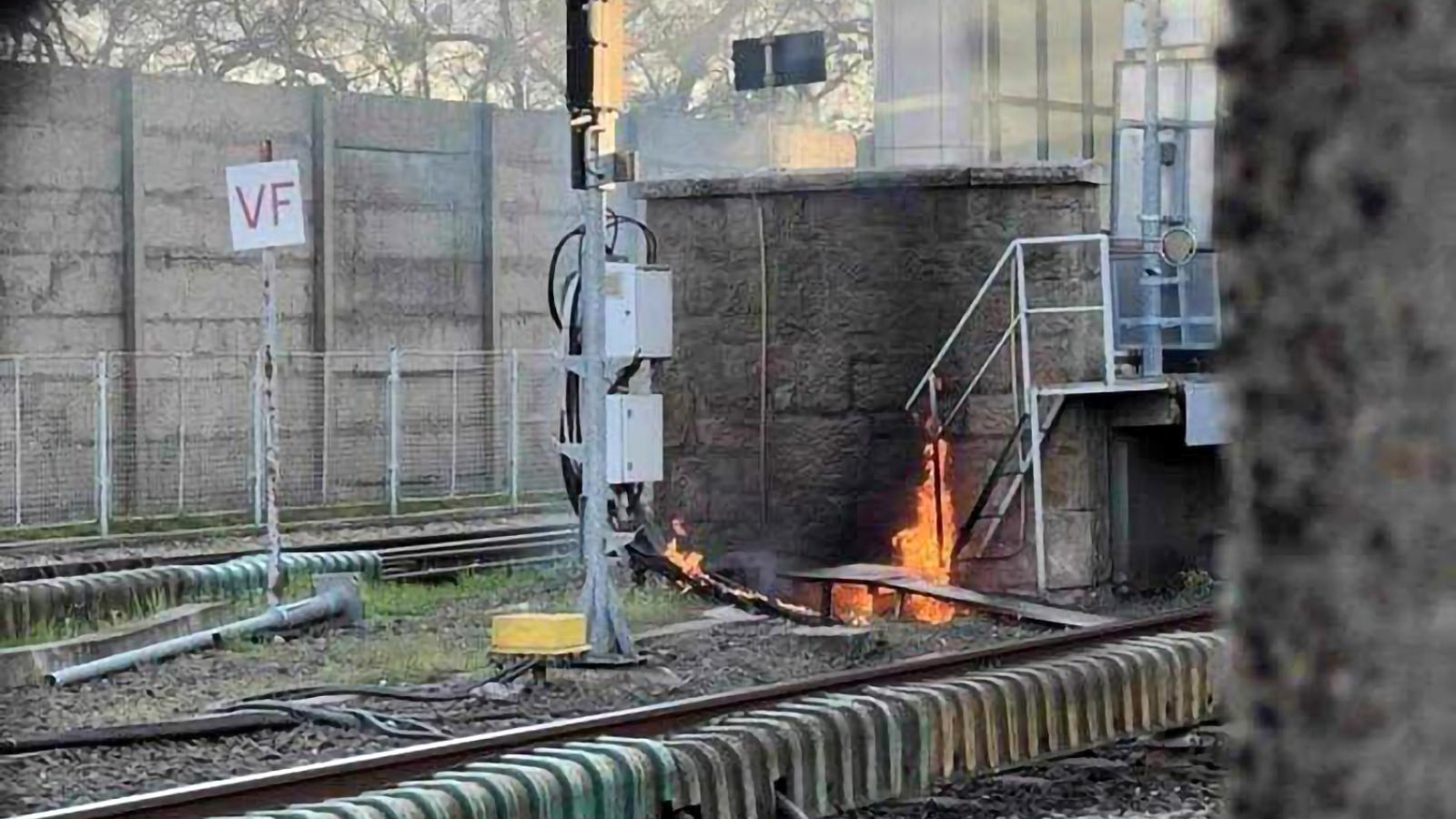 Ezen az látható, amint a Pillangó utcai megállóban nagy lánggal égnek a peron végében található vezetékek.