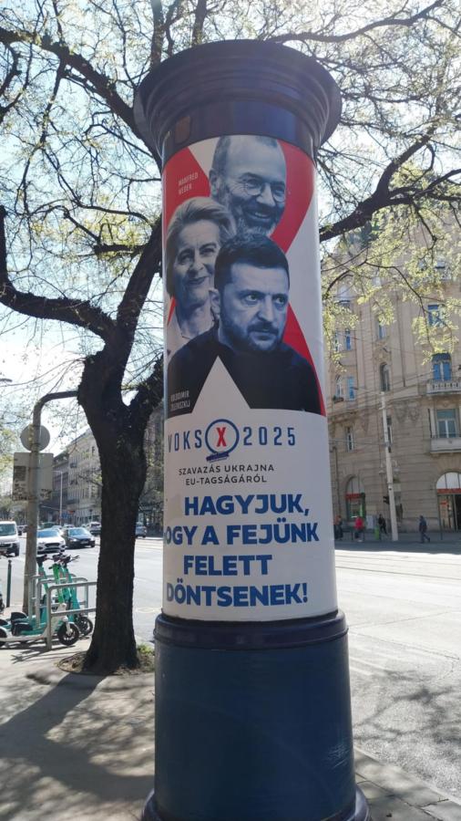 „Támogatja-e Ön, hogy Ukrajna az Európai Unió tagja legyen?” – kérdezi tőlünk drága kormányunk a szavazólapon, amelynek kitöltésére a plakáton is biztat. IGEN/NEM. Ahogy tetszik, csak alá kell húzni az igenlést vagy a tagadást. Mérlegelhetünk szabadon. A kormány pedig annyira tisztességes és bátor, hogy nem tér ki az állásfoglalás elől. Elénk tárja véleményét. Finoman, elegánsan, a befolyásolás szándéka nélkül. Három arc: Manfred Weber, az Európai Parlament Európai Néppárt képviselőcsoportjának vezetője. Fölényesen nevet. Ursula von der Leyen, az Európai Bizottság elnöke. Magabiztosan mosolyog. És Volodimir Zelenszkij, Ukrajna elnöke. Aki kihívó tekintettel mered valamerre. Nincs velük komoly baj, emberi mivoltukban jelennek meg. Mögöttük egy nagy piros iksz. Ha rajtuk lenne, azt jelentené, nem kérünk belőlük. De mögöttük van. Vagy ez ugyanazt sugallja? Nem lehet, ez csupán némi kétely kormányunk részéről, jobb vigyázni velük, még képesek nélkülünk dönteni. Ne hagyjuk hát! Ne döntsenek nélkülünk. Hogy miről? Ukrajna EU-tagságáról.