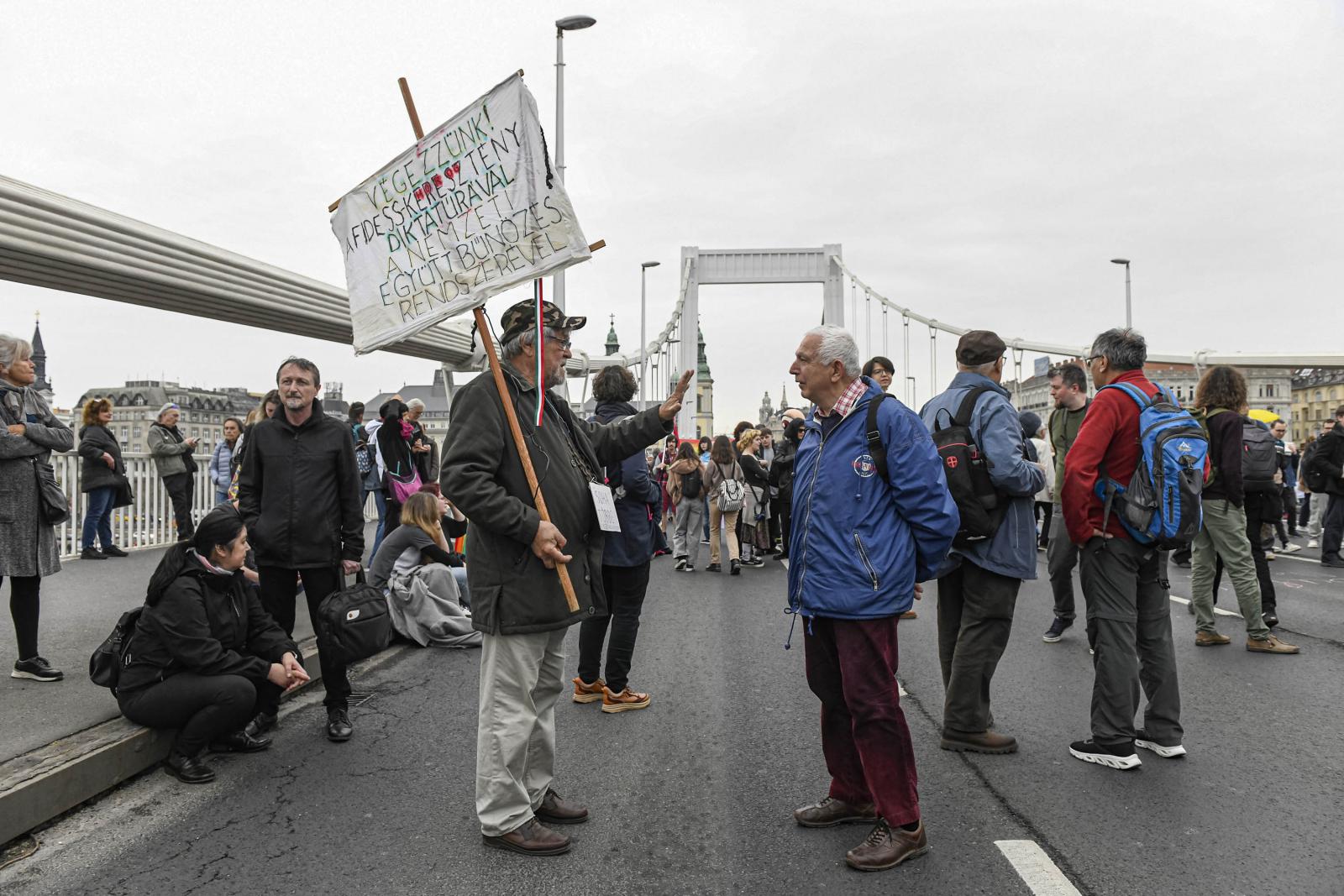 Mi a faszért van lezárva, ha nincs itt senki? – mérgelődött kezdés előtt 10 perccel egy huszonéves lány kedd délután az Erzsébet hídon, ahol Hadházy Ákos tartott újabb tüntetést. Ígéretéhez híven a független parlamenti képviselő délután 5 órakor meg is jelent az Erzsébet hídon. Elképzelései szerint kedden és szerdán is lezárják a felhívására a hidat, annak ellenére, hogy helyszíni tudósítónk szerint kezdésre még meglehetősen kevesen voltak, 100 ember sem gyűlt össze. A keddi programról Hadházy Ákos azt írta, „nem balhézni mennek”, de annál határozottabban követelik a technofasiszta törvények visszavonását. Fel akarnak menni a budai Várba is, ahol egész éjszaka folytatódik a demonstráció, majd másnap egész nappal a „köztéri fogadóóra”, azokkal pedig, akiknek a munkahelyi, iskolai elfoglaltságuk nem engedi a napközben tüntetést, szerda délután 17 órakor találkozik ismét fenn, a Karmelita kolostor előtt, hogy aztán együtt levonuljanak az Erzsébet hídra.