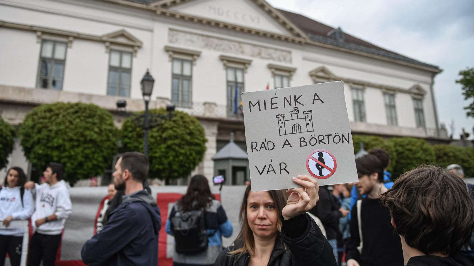 Újra alkotmányt módosított a fideszes kétharmad, a tüntetők nem jutottak el a Sándor-palotáhozTompos Márton: Van még hely a Tisza mellett is, Momentum által támogatott DK-s és MSZP-s jelöltek biztosan nem lesznekEgy harmincas éveiben járó Fuck-NER pólós férfi szerint csak a rossz idő miatt vannak itt kevesen, az, hogy tegnap mégis elfogadták az alkotmánymódosítást nem a tiltakozások kudarcát mutatja. Tegnap is látszott, hogy az emberek nagyon dühösek. Ha nem vonják vissza ezt előbb-utóbb, szerinte forradalom is lehet.