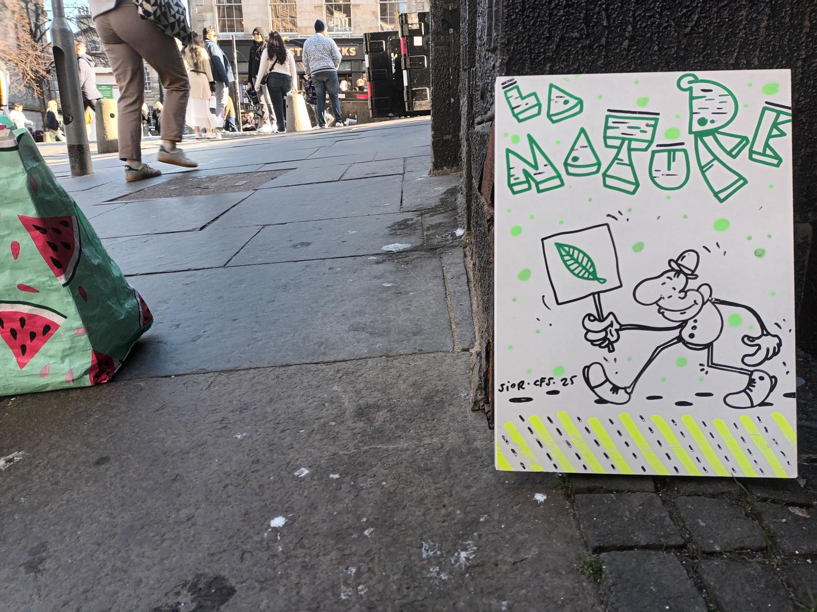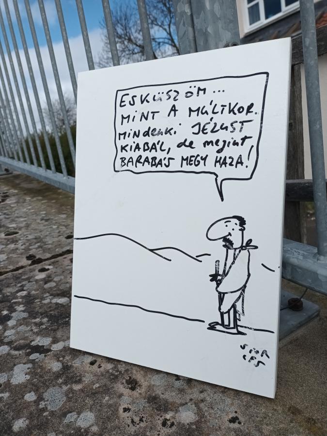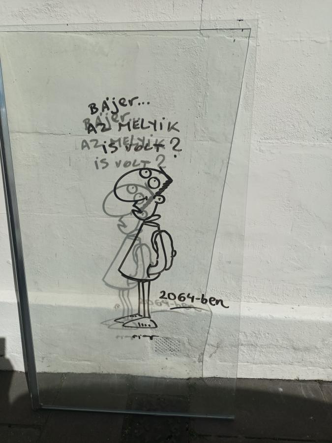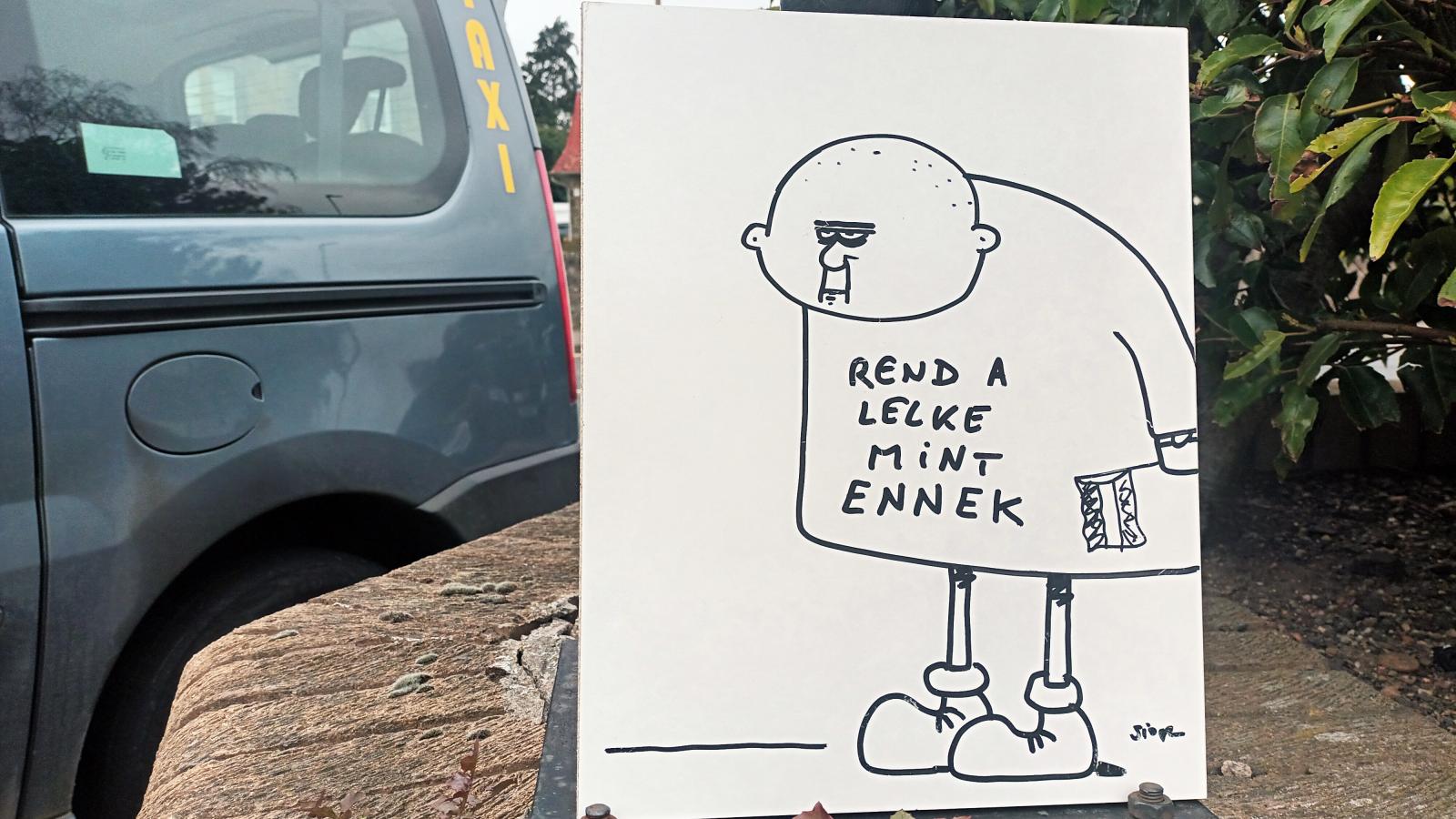 Fekete Valér Sior Skóciában élő karikaturista-graffitis szerzőnk történelem–francia szakos tanárként ment el családjával az országból közel kilenc éve. Általában a hét minden napján dolgozik. Konyhán főz, épületet bont, kertben vág rendet. Vagy éppen megrendelésre dekorál, az étterem kirakatától az iskola bejáratáig. Alkotói szabadidejében rajzol, és amikor nincs a keze ügyében filctoll, akkor fejben rajzol. Tele van összefüggésekkel, véleményekkel, kiakadásokkal és beakadásokkal, de főként emberséggel. Ismét egy csokor tőle, mielőtt újra visszamegy a tetőre (kertbe, konyhára) melózni.