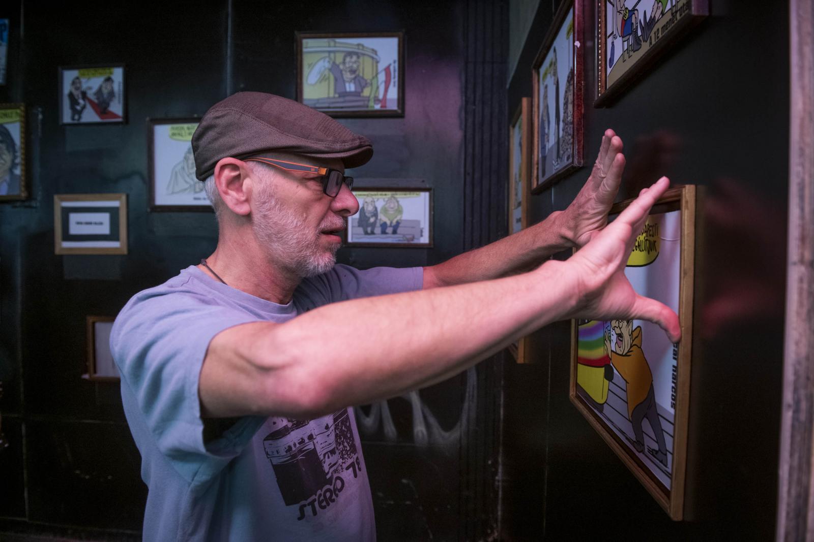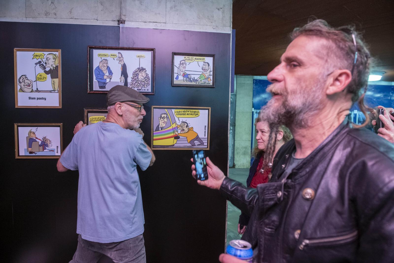 – Én adtam száz rajzot a Kutyapárt passzivistáinak, akik egy online szavazást indítottak el, melyen bárki kiválaszthatott azok közül tizennyolcat, a legtöbb szavazatot nyert képeket pedig kiállították. Szóval ez közösségi akaratot tükröz. Én csak azt kértem az emberektől, hogy amennyire lehet, ne bántó rajzokat válasszanak, hiszen ez köztéri kiállítás lesz. De most majd meglátjuk, mennyire voltak erre tekintettel – mondta lapunknak Pápai, akinek régi álma volt, hogy ha lesz egyéni tárlata akkor lépjen fel azon a Méhek nevű együttes, mely bár korábban feloszlott, most egyik fele, Méhes Csaba – Pápai kísértében – az aluljáróban instant koncertet adott.