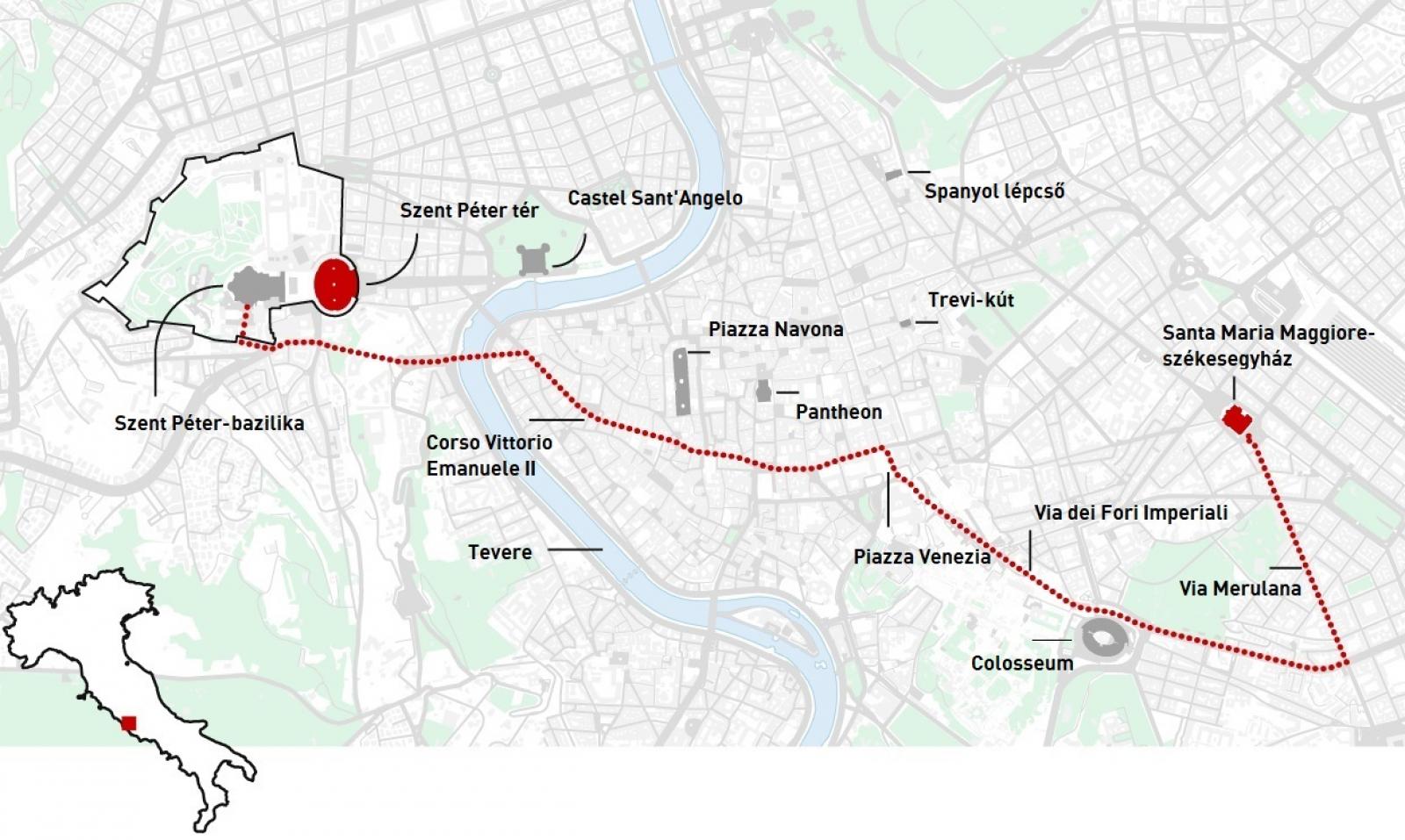 Elindult a pápamobil Ferenc pápa koporsójával a katolikus egyházfő végső nyughelye, a Santa Maria Maggiore-bazilika felé. Az autó rendőri kísérettel halad, közben végig a hívek üdvözlő sorfala kíséri őket.
