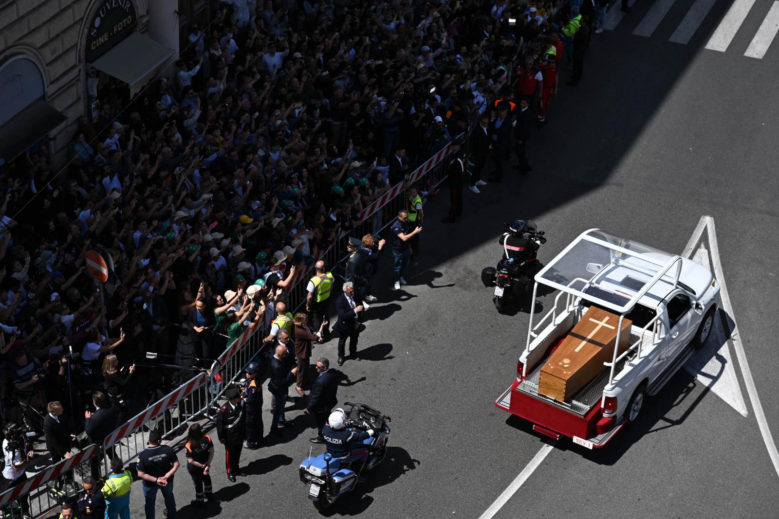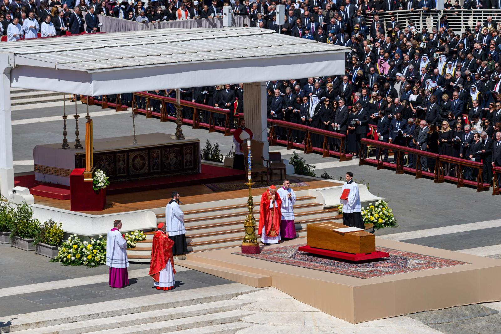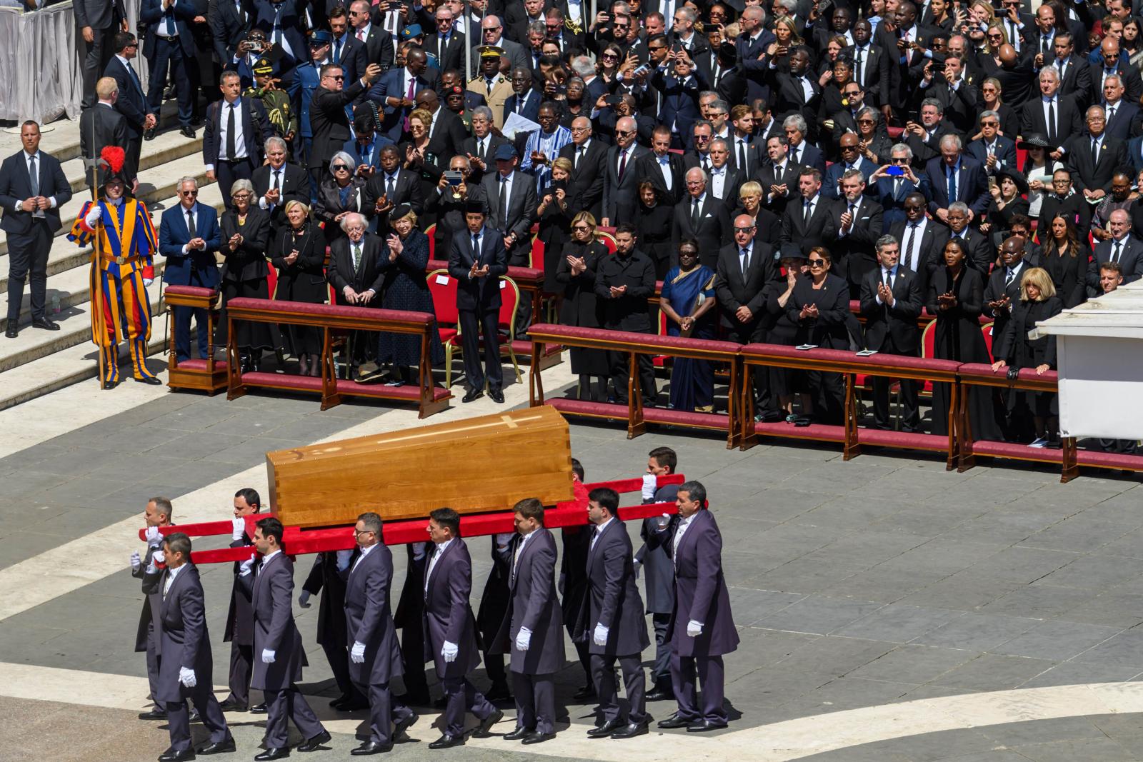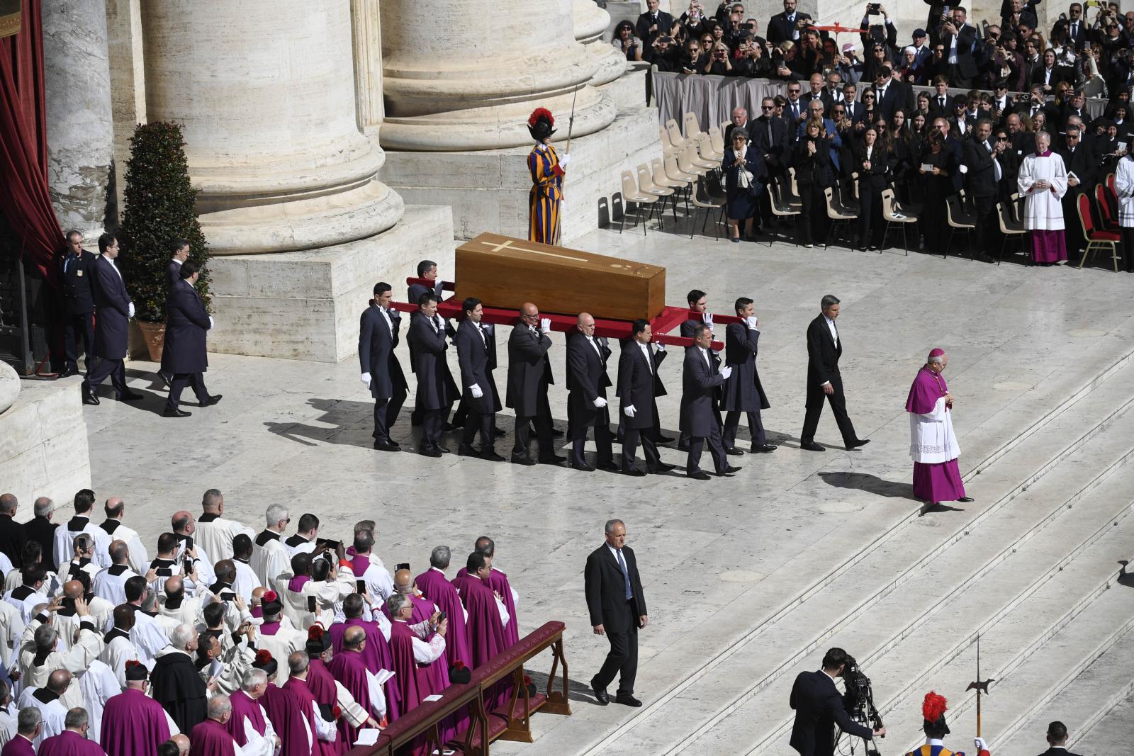 A húsvét hétfőjén elhunyt katolikus egyházfőt a világ politikai vezetői mellett több százezer hívő kísérte el az utolsó útján. Gyászszertartását a vatikáni Szent Péter téren tartották, utána a temetési menet elindult a Santa Maria Maggiore-székesegyház felé.