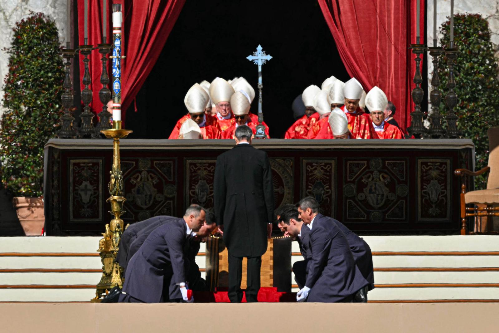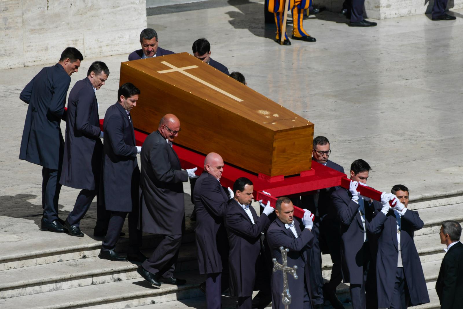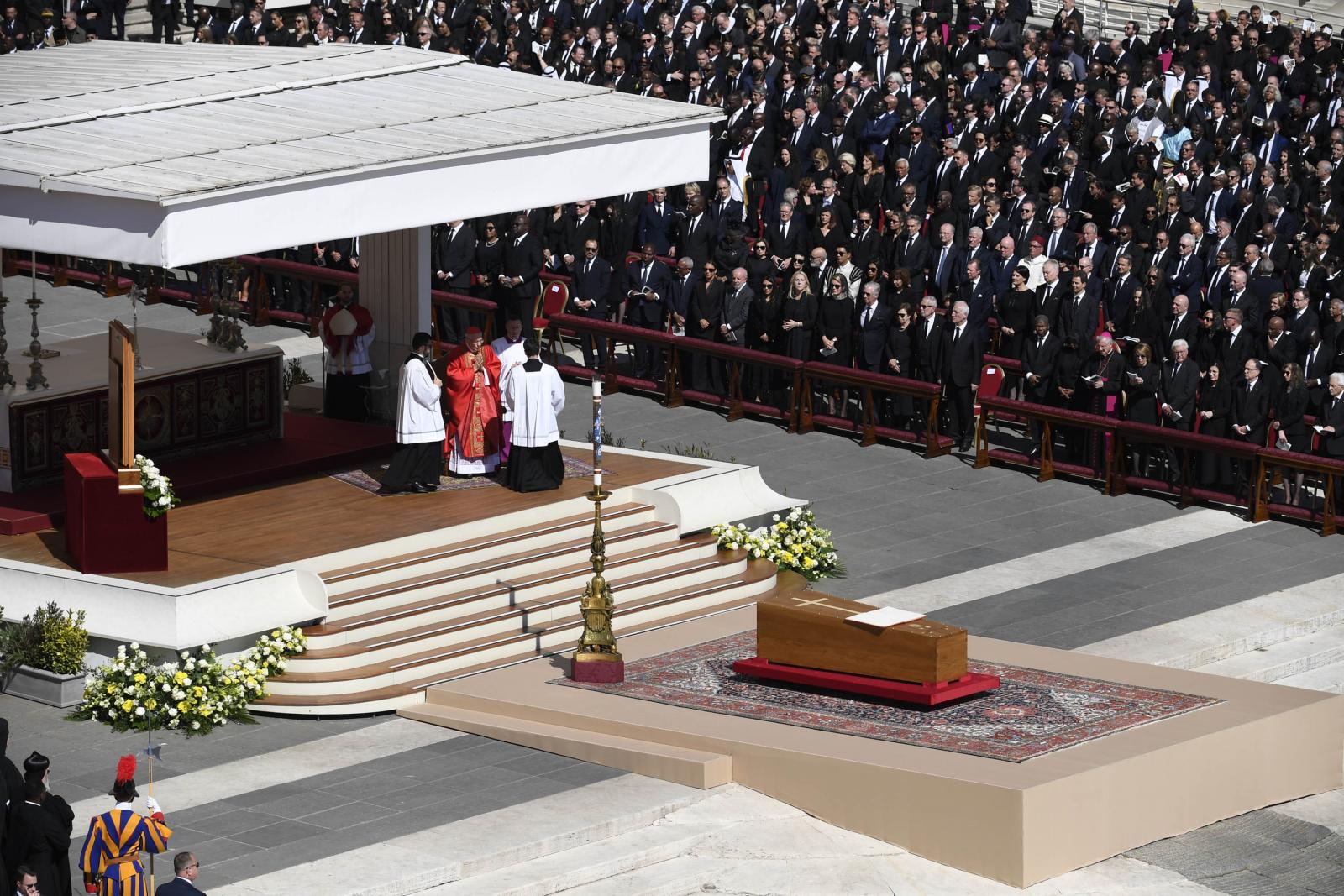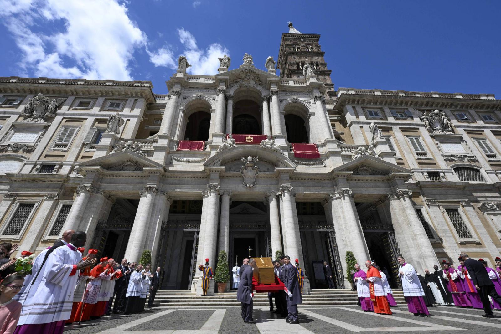 A húsvét hétfőjén elhunyt katolikus egyházfőt a világ politikai vezetői mellett több százezer hívő kísérte el az utolsó útján. Gyászszertartását a vatikáni Szent Péter téren tartották, utána a temetési menet elindult a Santa Maria Maggiore-székesegyház felé.