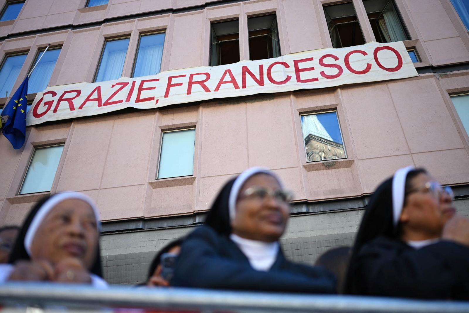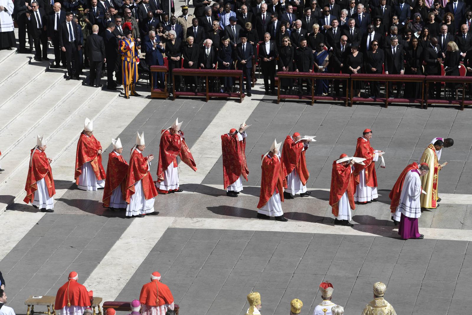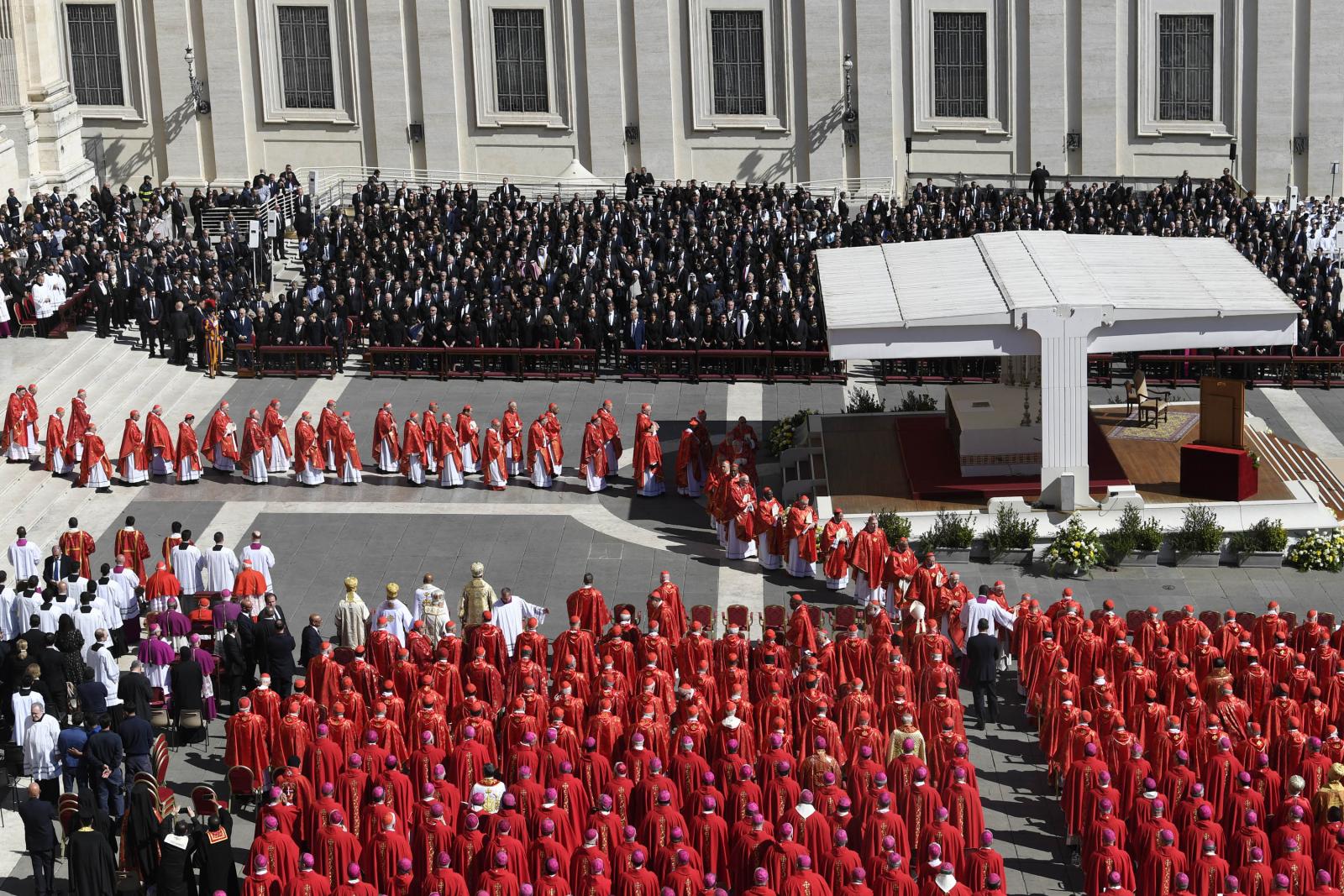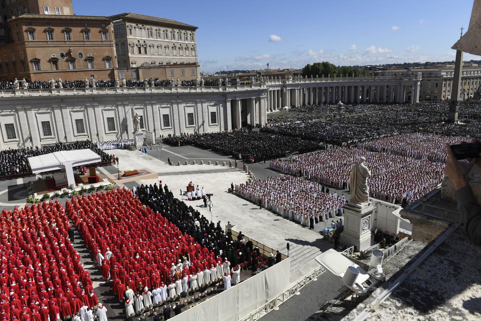 A húsvét hétfőjén elhunyt katolikus egyházfőt a világ politikai vezetői mellett több százezer hívő kísérte el az utolsó útján. Gyászszertartását a vatikáni Szent Péter téren tartották, utána a temetési menet elindult a Santa Maria Maggiore-székesegyház felé.
