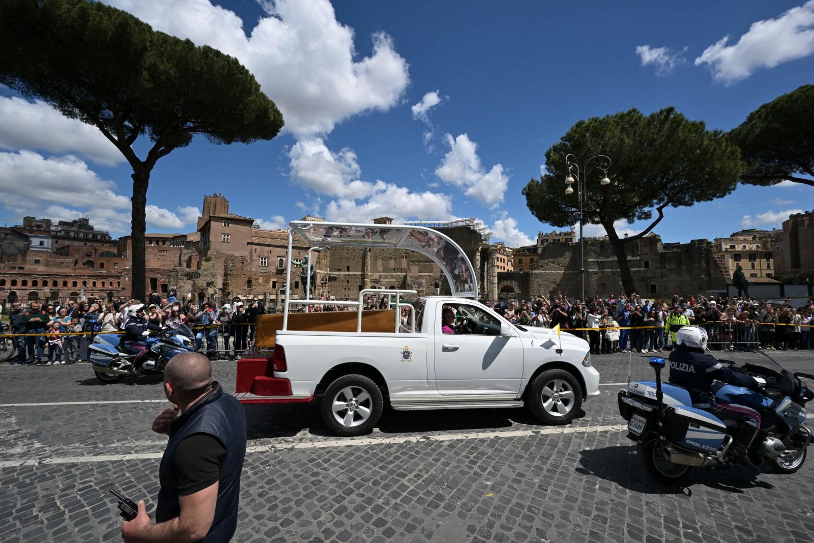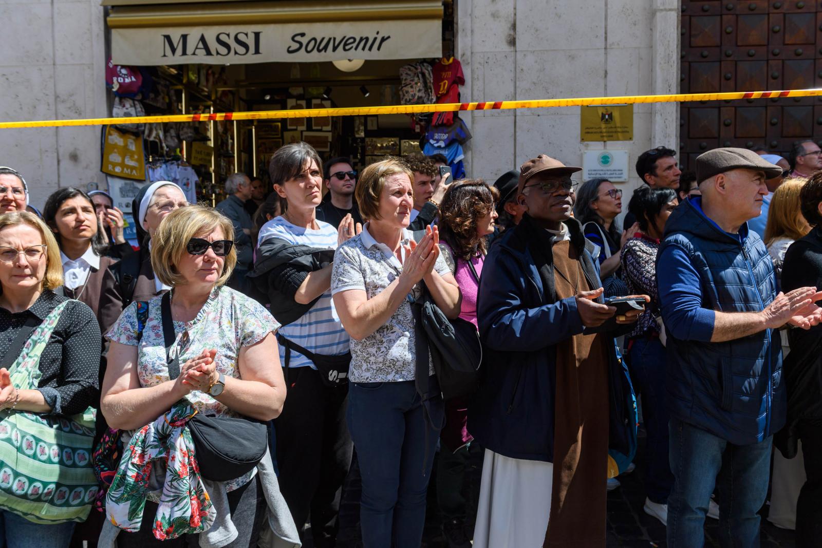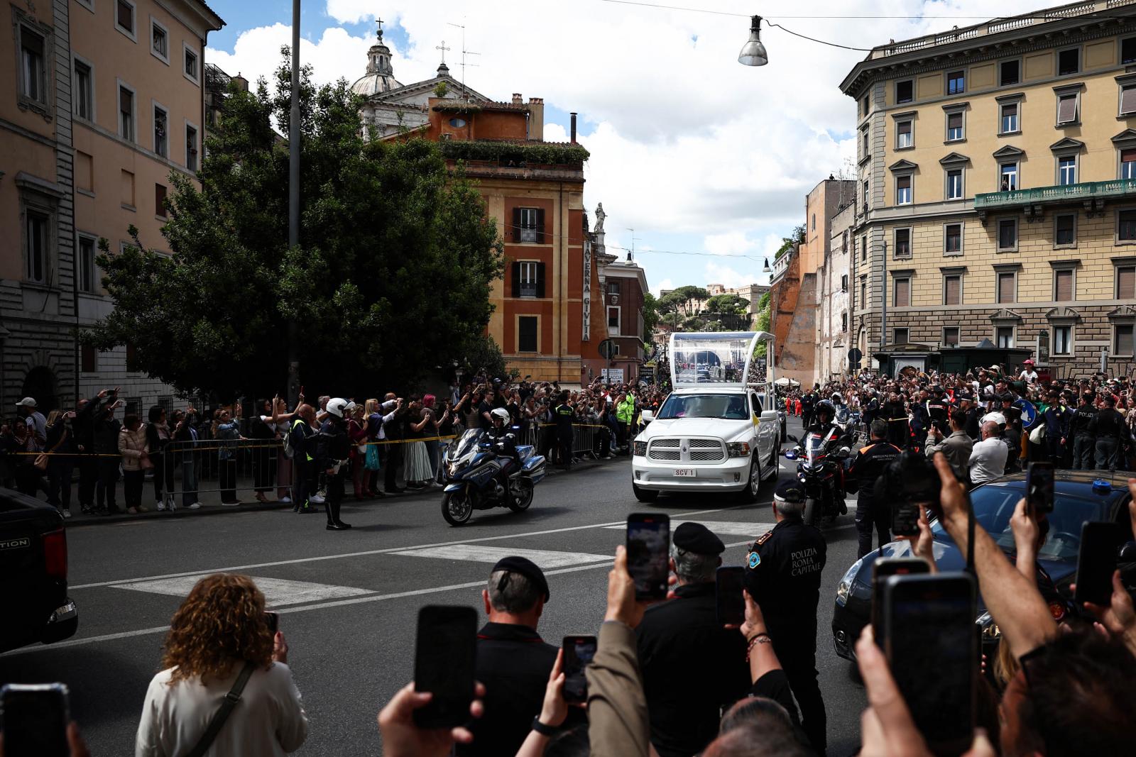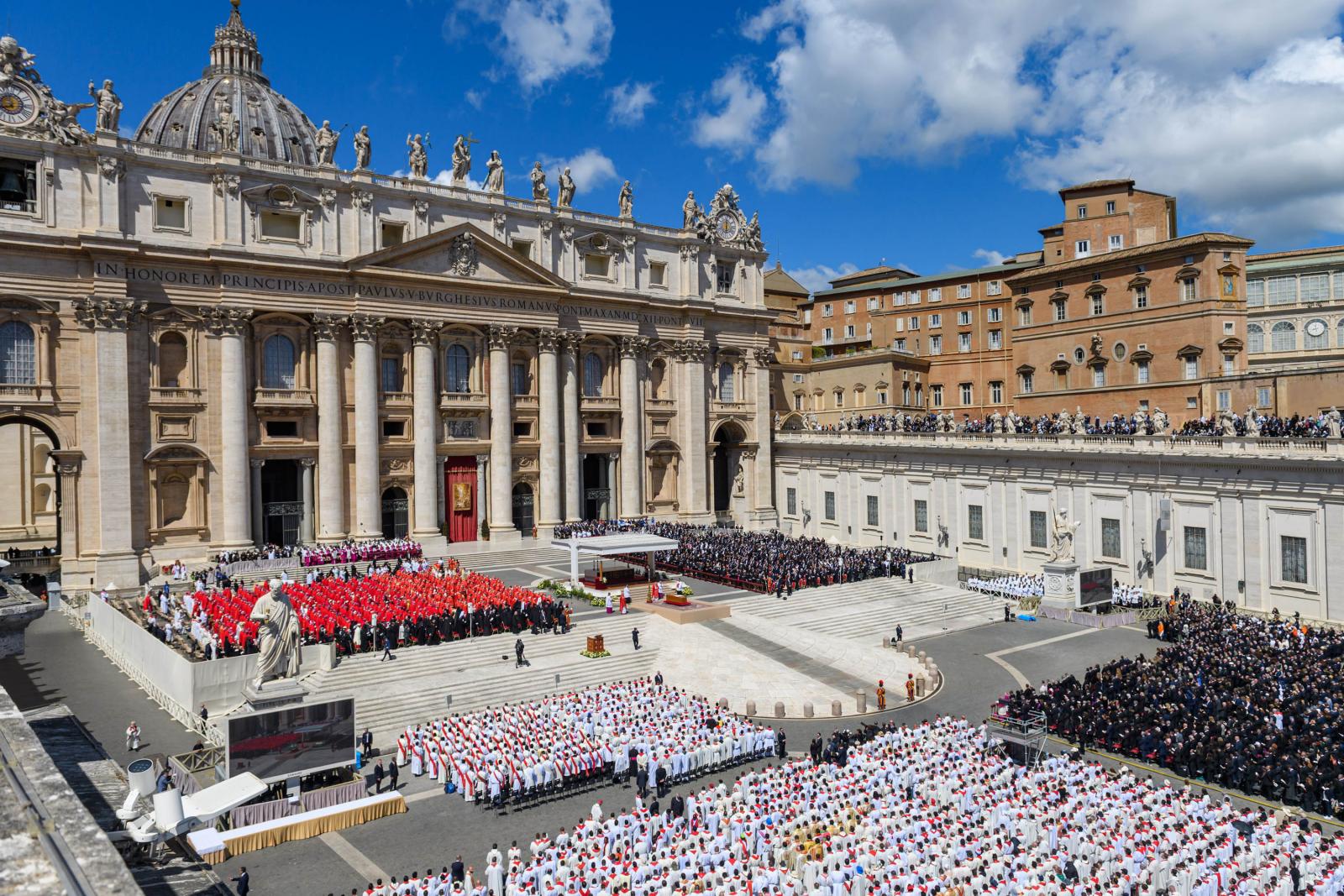 A húsvét hétfőjén elhunyt katolikus egyházfőt a világ politikai vezetői mellett több százezer hívő kísérte el az utolsó útján. Gyászszertartását a vatikáni Szent Péter téren tartották, utána a temetési menet elindult a Santa Maria Maggiore-székesegyház felé.