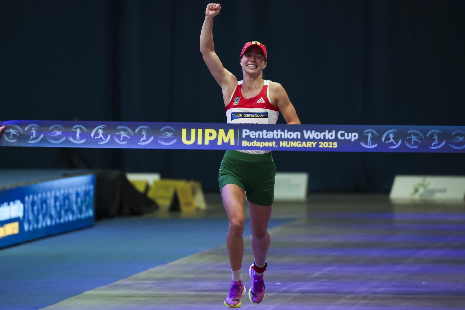 Ezt követően a 200 méteres úszásban 2:13.54 perccel a második legjobb volt, így a lövészetekkel kombinált 3000 méteres futást harmadikként kezdhette meg, négy másodperccel az egyiptomi Farida Halil és eggyel az olasz Aurora Tognetti mögött. Utóbbit hamar utolérte, de a táv felénél már az egyiptomi ellenfelét is megelőzte a BOK Csarnok közönségének nagy örömére. Végig jó tempóban futott és három sorozatban jól is lőtt, a végén pedig még az is bőven belefért neki, hogy utolsóra valamivel több időt töltött a lőállásban. A zárókörénél nagy fölénnyel érkezett vissza a csarnokba a szabadtéri szakasz teljesítése után és - a kombinált számban a hatodik eredményt elérve - simán győzött. A 14 éves Halil lett a második, a harmadik helyre pedig a francia Coline Flavin jött fel.