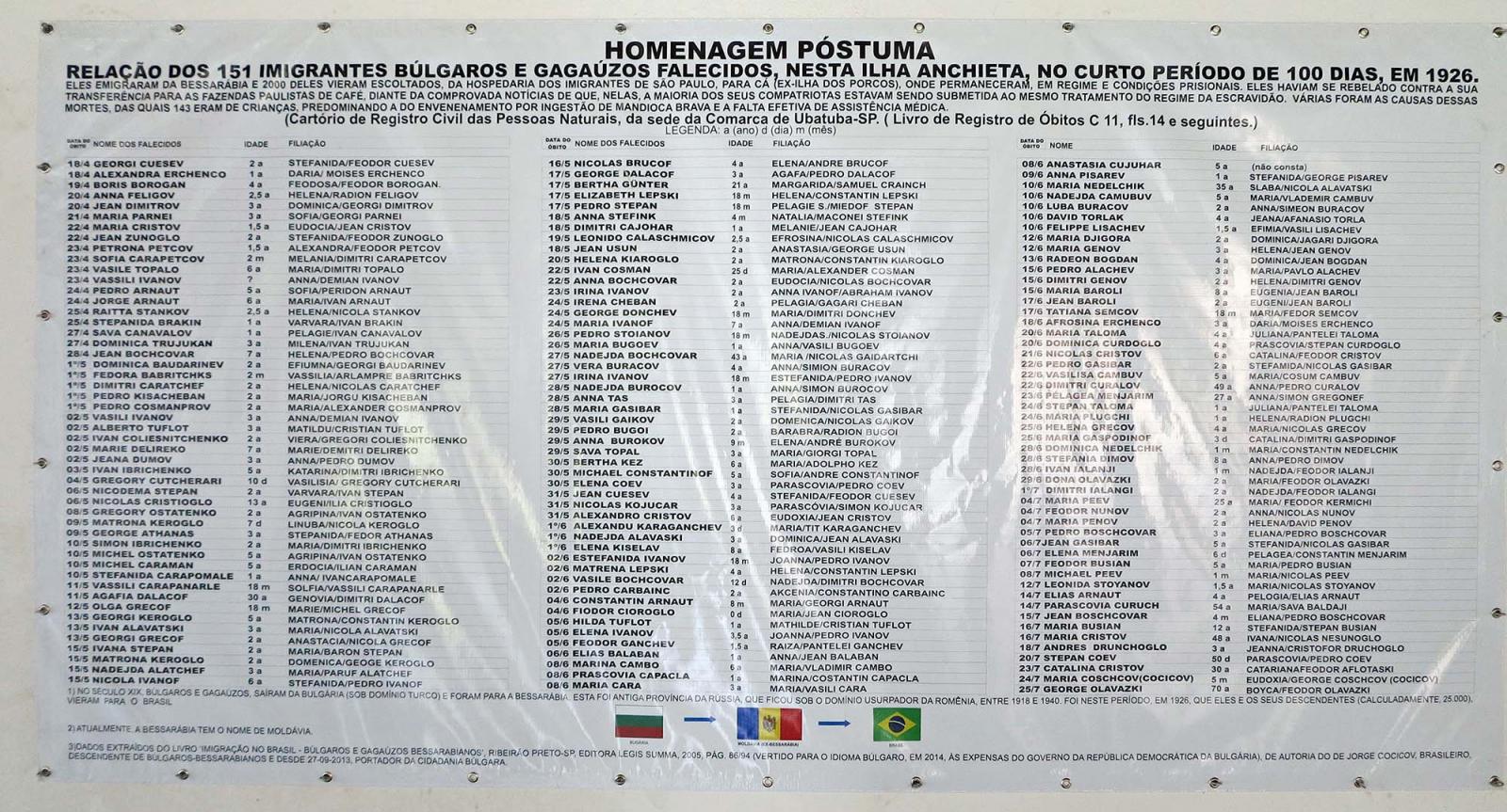 A feljegyzések szerint a növény 100 nap alatt mintegy 151 ember halálát okozta. Ennek estek áldozatául azok a többségében bolgár telepesek is, akiket a sziget rendhagyó temetőjében, az erdő közepén temettek el. Az emléküket ortodox keresztek, emellett pedig 2014 óta emléktáblák is őrzik a szigeten. Ekkor látogattak el az áldozatok családjai is erre az apró brazil szigetre, ami bár földi paradicsomnak tűnik, százak számára valószínűleg épp az ellenkezőjét jelentette. A sziget tragikus története nem ért véget az itt elhunyt bolgár telepesekkel. Sőt, tulajdonképpen ez csak a kezdet volt.