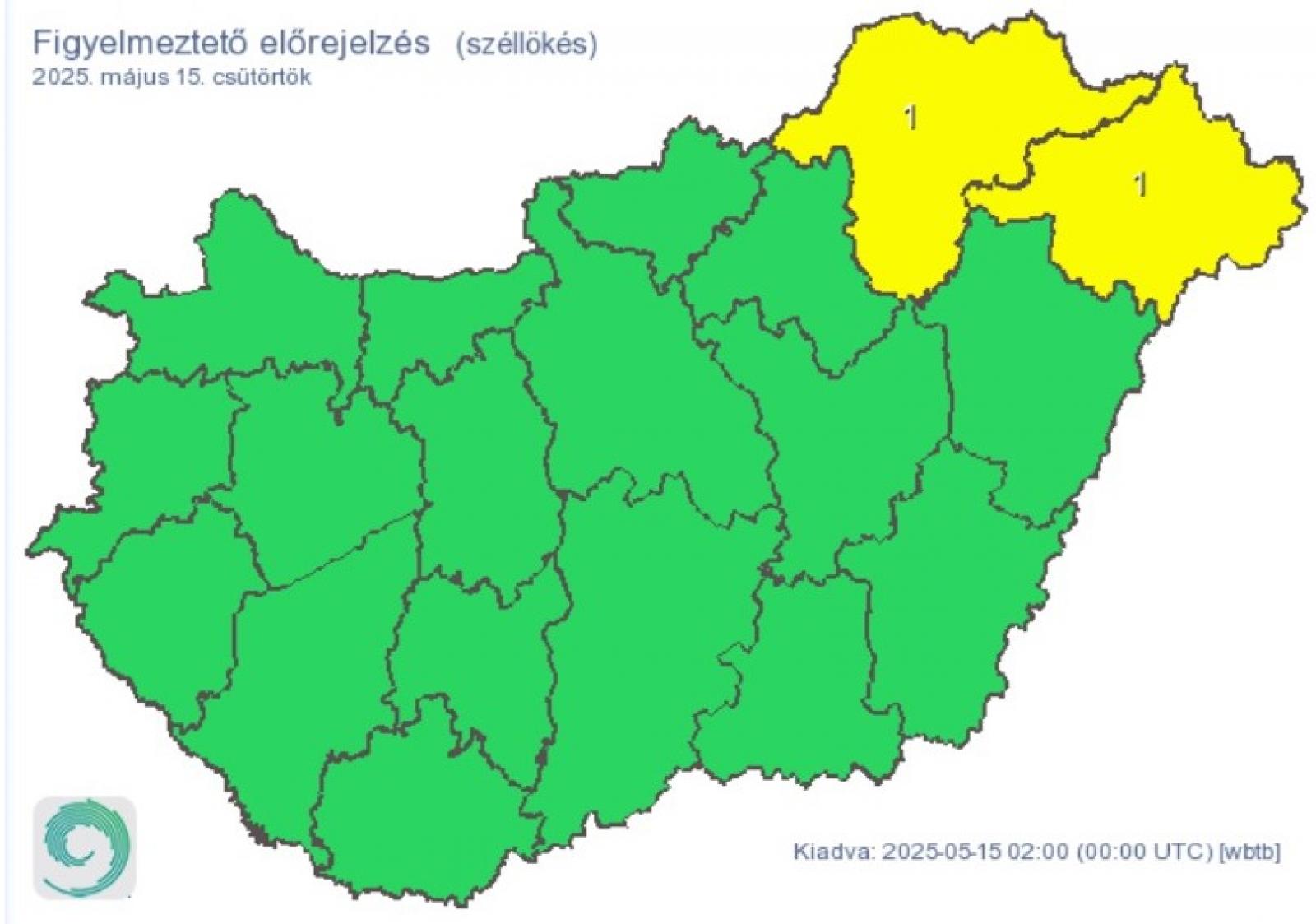 Különösen az északkeleti országrészben akár 70 km/h-t meghaladó széllökések is lehetnek, emiatt Borsod-Abaúj-Zemplén és Szabolcs-Szatmár-Bereg vármegyére is elsőfokú figyelmeztetést adtak ki. A front mögött a késő délutáni, esti órákra veszít erejéből a légmozgás.