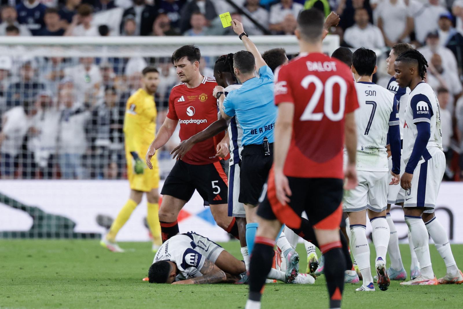 88. perc: Maguire két kézzel vitte földre Romerót, amiért sárga lapot kapott.