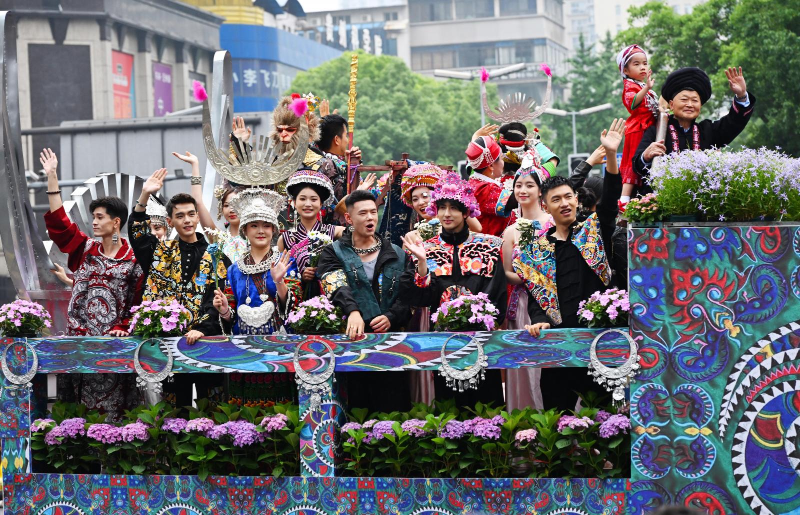 Legalább 3600 résztvevője volt annak a parádénak, amelyet a délnyugat-kínai Kujcsou tartomány fővárosában, Kujjangban tartottak a kínai turizmus napja tiszteletére.