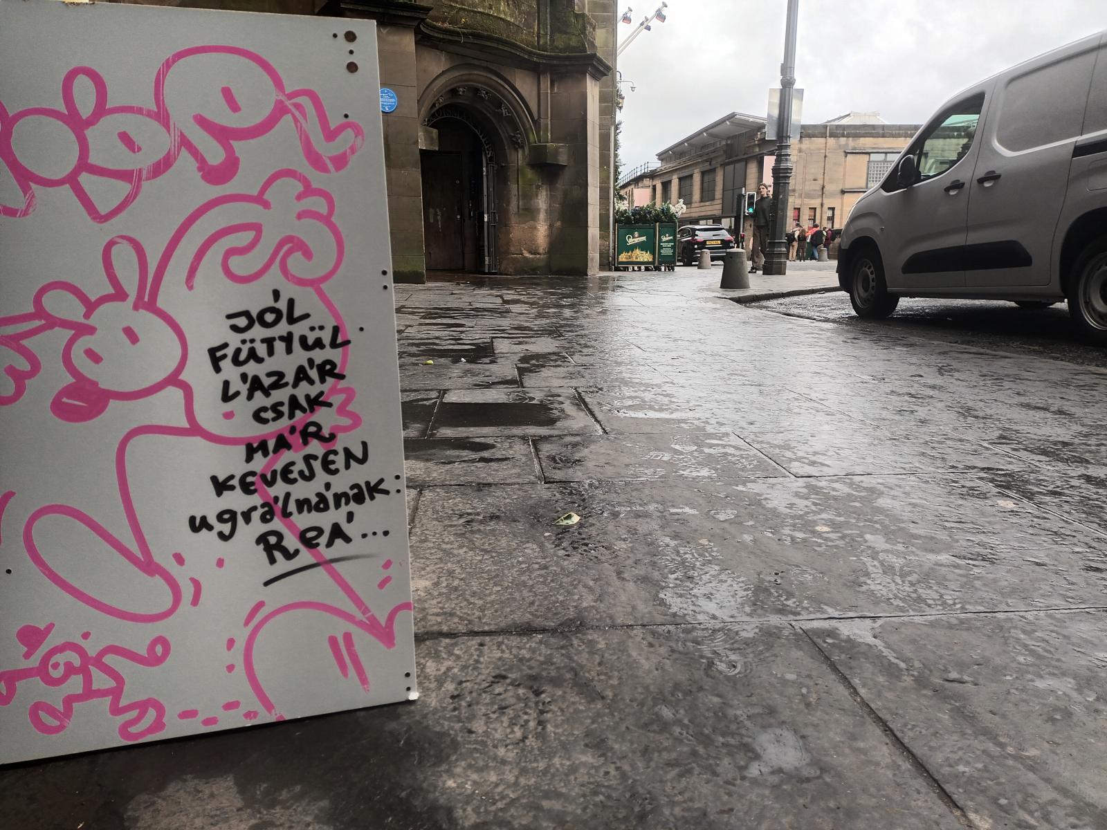 Szerzőnk, a karikaturista-graffitis Fekete Valér Sior itthon történelem–francia szakos tanár volt, új hazájában, Skóciában sokféle munkát elvállal: kertészkedik, bontásokon vesz részt, dekorál, tetőt javít. Szabadidejében a kalandos életükről, a beilleszkedésükről, a magyarországi emlékekről ír. És rajzol mindenről, legyen az akár az óhaza, akár a nagyvilág közéleti eseménye. A skótok egyelőre tűrik, igaz, alkotásai nem igényelnek anyagi támogatást. Karcolható felületek pedig szép számmal vannak arrafelé is.