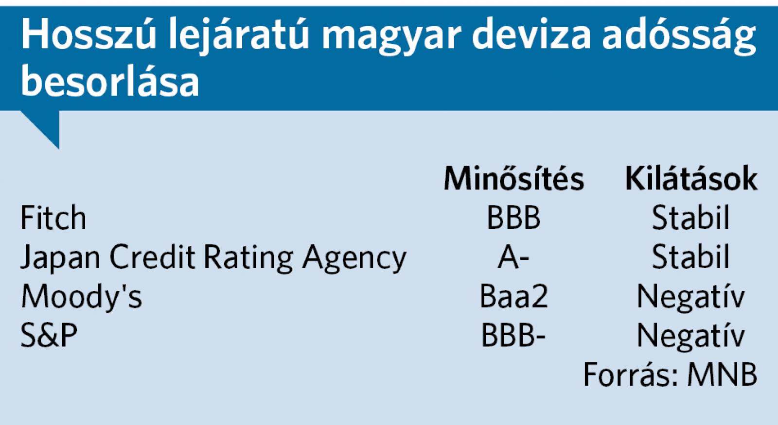 Ha így lenne, akkor a háznál a befektetési kategória legalsó szintjére kerülne Magyarország, ami megfelel a S&P jelenlegi besorolásának.