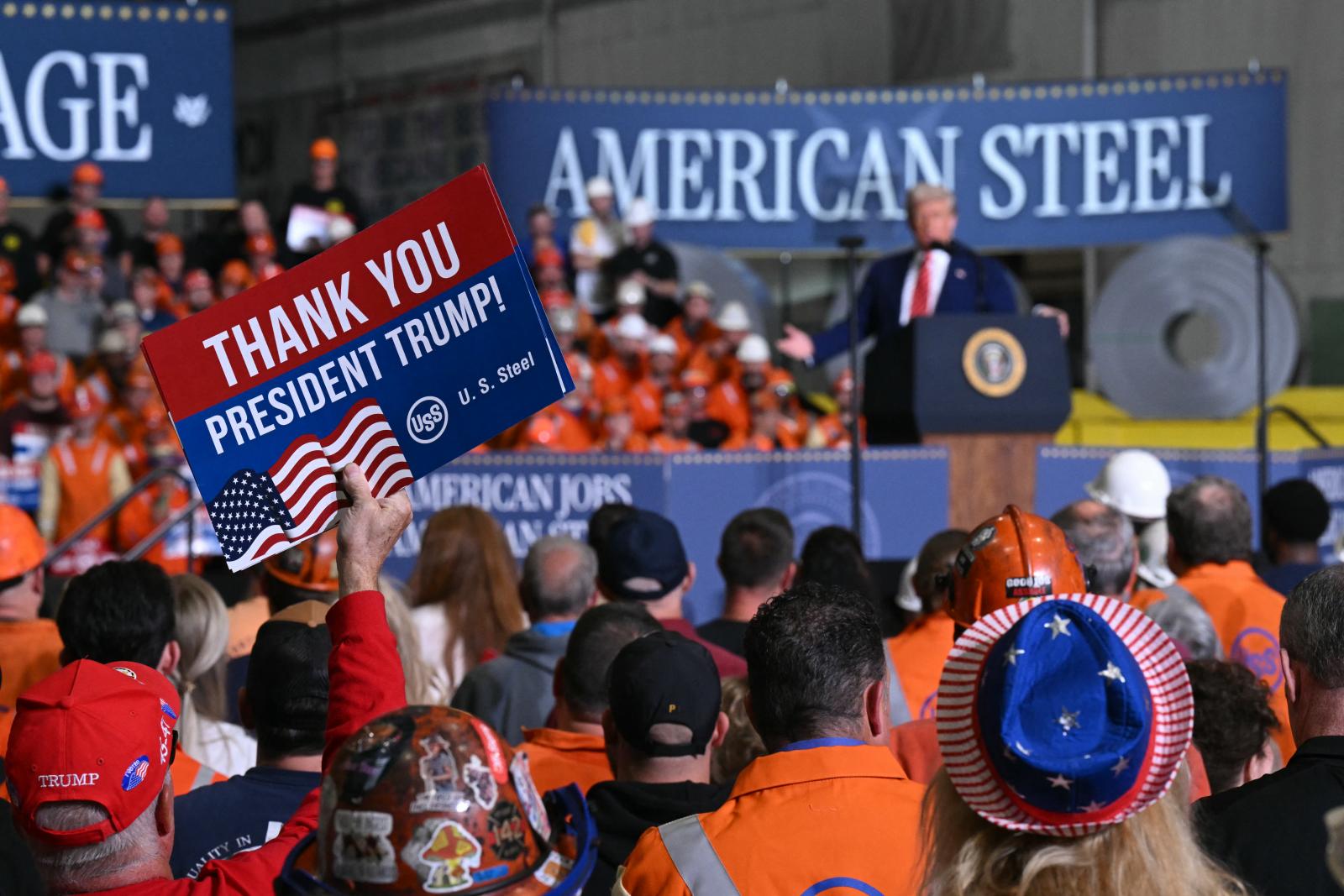 A pennsylvaniai Pittsburghben tartott gyűlésen Trump elmondta, hogy a lépés elősegíti a helyi acélipar és ellátás fellendülését, miközben csökkenti a Kínától való függőséget. Hozzátette, 14 milliárd dollárt fektetnek a térség acélgyártásába az US Steel és a japán Nippon Steel közötti partnerség keretében, bár később újságíróknak azt mondta, hogy még nem látta és nem hagyta jóvá a végleges megállapodást.