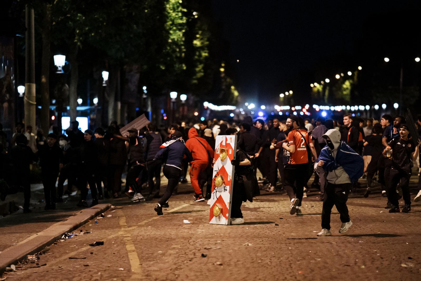 Páizsban rongálásokba és összecsapásokba torkollt a Paris Saint-Germain szurkolóinak ünneplése. A tömeg több helyen összecsapott a rendfenntartókkal. A Champs Elysées-n buszmegállókat törtek össze, megdobálták a rohamrendőröket, akik könnygázzal és vízágyúkkal próbálták meg visszaszorítani a tömeget. A párizsi körgyűrűn is összecsapások voltak a rendőrökkel, és legalább két autót felgyújtottak a PSG Parc des Princes stadionja közelében, ahol 48 ezer ember szurkolt.