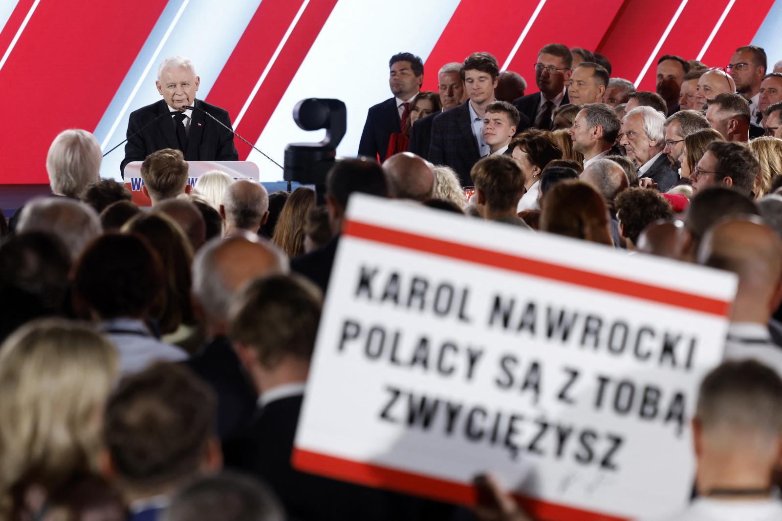 A PiS átváltott Ukrajna-szkeptikus üzemmódba, átvette a szélsőséges nacionalisták frazeológiáját, sőt átvette programjukat, amikor Karol Nawrocki aláírta Slawomir Mentzen Konföderáció-jelölt „listáját”, amelyben több EU-, és Ukrajna-ellenes pont szerepelt. Bejelentette: újra előveszi a lengyelek járó német háborús jóvátétel ügyét. A lengyel társadalomban észlelhető az ingerültség az ukrán menekülteknek adott támogatások miatt. Az Ukrajna-fáradtság, az Oroszország-félelem fontos eleme volt a jobboldal kampányának. Azt terjesztették, hogy Tusk és Trzaskowski készek lengyel katonákat küldeni Ukrajnába. A külpolitika nem uralta el teljesen a kampányt, de a jobboldali jelölt erősen EU-ellenes frazeológiát használt. A PiS politikai víziója az USA-tól várja Lengyelország biztonságát. Donald Trump maga is beszállt a kampányba, fogadta Nawrockit, s állítólag megígérte neki, hogy győzni fog. Pár napja Varsóban is tartottak CPAC-konferenciát a republikánusok, ahová Trump elküldte belbiztonsági miniszterét. Kristi Noem támadta az európai politikusokat, Brüsszelt és Nawrocki mellett agitált.