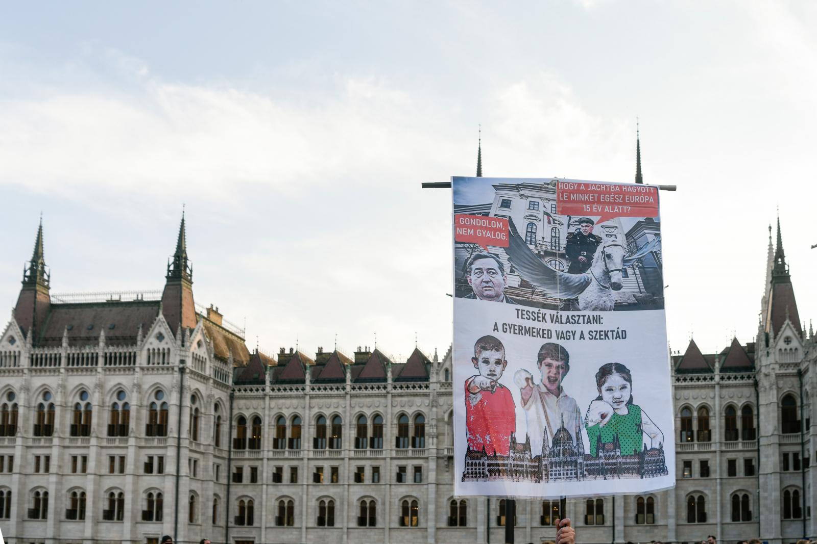 Szerinte ha úgy döntünk, hogy ezen a válaszúton a szabad nyugati Európát választjuk, akkor a nulladik lépése az önvizsgálat. hogy jutottunk el idáig, hogy hogy jutottunk el oda, hogy gyerekek szerveznek tüntetést azért, hogy ne zárják be az utolsó szabad szerkesztőségeket, hogy Lázár János egy „lópályán” akarja körbe-körbe sétáltatni a kisebbségeket?! Pontosabban még ott sem - tette hozzá. Ez egy nyíltan náci beszéd volt - jelentette ki, majd azzal folytatta, sokan azt mondják, Magyarország újra és újra ugyanabba a cipőbe lép, hogy mindig elindul valamerre, aztán megtorpan, visszafordul, félúton elgyengül, hogy mindig lesz valaki, aki megmondja, mi a rend, és mindig lesz tömeg, aki bólogat hozzá. Ma nem a múlt hibáiról beszélek, hanem arról a mély mintáról, ami miatt újra és újra belesétálunk ugyanabba a csapdába, mert nem a zsarnok teremti a szolgát, hanem a szolgalelkűség teremti a zsarnokot. Nem a hatalom kezdte el a zsarnokságot. A hatalom csak akkor lett zsarnok, amikor hagytuk, hogy az legyen, amikor elfogadtuk, hogy mi kicsik vagyunk, tehetetlenek vagyunk, úgysem változik semmi, amikor nem kérdeztünk vissza, amikor hallgattunk. Ez a zsarnokság nem tankokkal jött, ez a zsarnokság szavazólapokon jött, kézfogásban, hallgatásban jött, ez a rendszer nem legyőzött minket, hanem belőlünk táplálkozott - fogalmazott. Azzal folytatta, ez a rendszer nem csak fentről épül, ez a rendszer belőlünk jön, és ha nem változtatunk belül, kívül sem fog. Nem elég azt mondani, hogy európai országot akarok, nem elég azt mondani, hogy legyen demokrácia. A demokrácia nem intézmény.